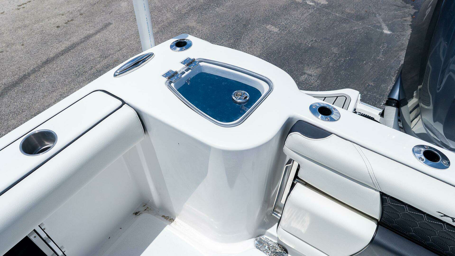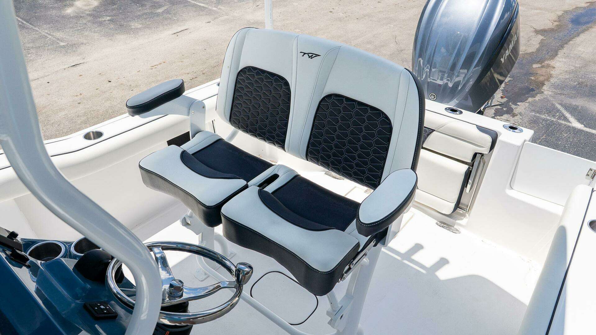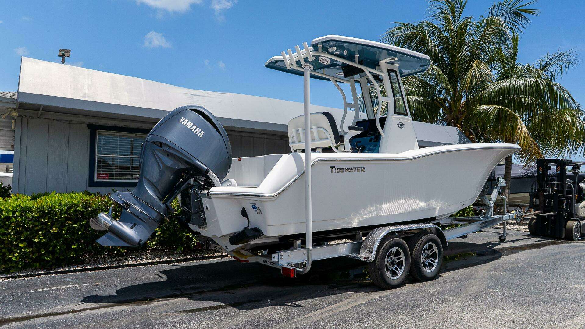 Take advantage of the Tidewater promotional upgrade—this boat comes standard with a Yamaha F250XB, but has been factory-upgraded at no extra cost to the more powerful F300XCB.