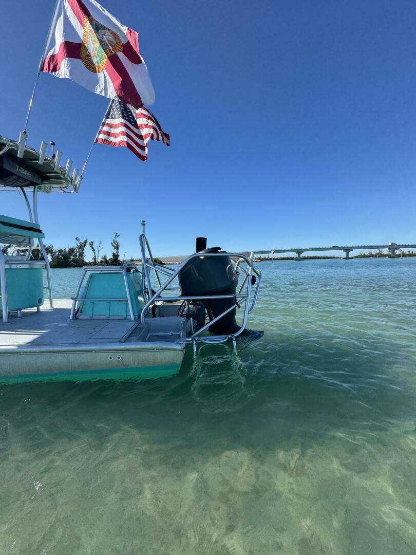 A raptor 12' shallow water anchor with handheld remote control. Twin 12' anchor spikes store on each side and have attachments fore & aft. Twin flags with covers for sandbar runs. Custom built swim ladder is the ultimate addition for easy walk on off at the sanbar. Simrad NSS12 12" chartplotter with Navionics chip. Fish finder with huge livewell on deck. JL Audio Stereo.