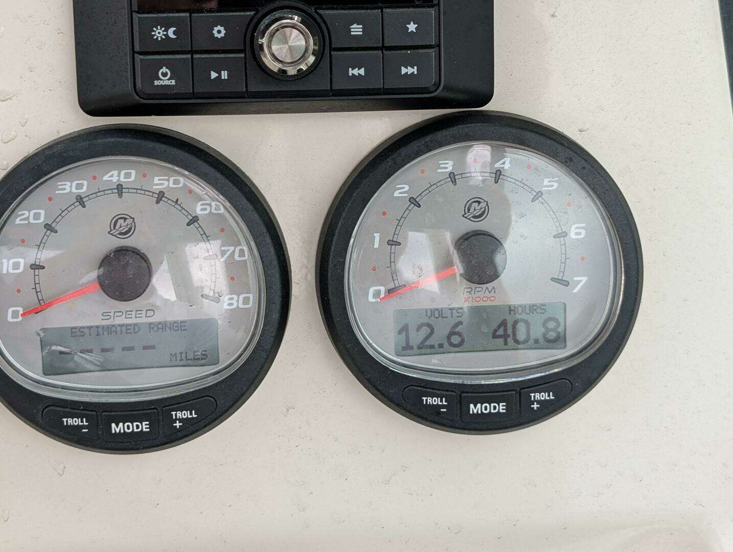 - Engine: Demo Pay features the Mercury Verado 300hp V8 4.6-liter Outboard. The smooth, refined power of a powerhead delivers exhilarating acceleration and top speed to run offshore with confidence, while its generous displacement and robust design provide uncompromising durability and reliability. The Mercury-exclusive Advanced MidSection (AMS) and under-cowl noise management set the standard for smooth, quiet marine propulsion. These exciting new V-8 Verado outboards are wrapped in crisp, bold styling that makes an unmistakable statement on any transom.