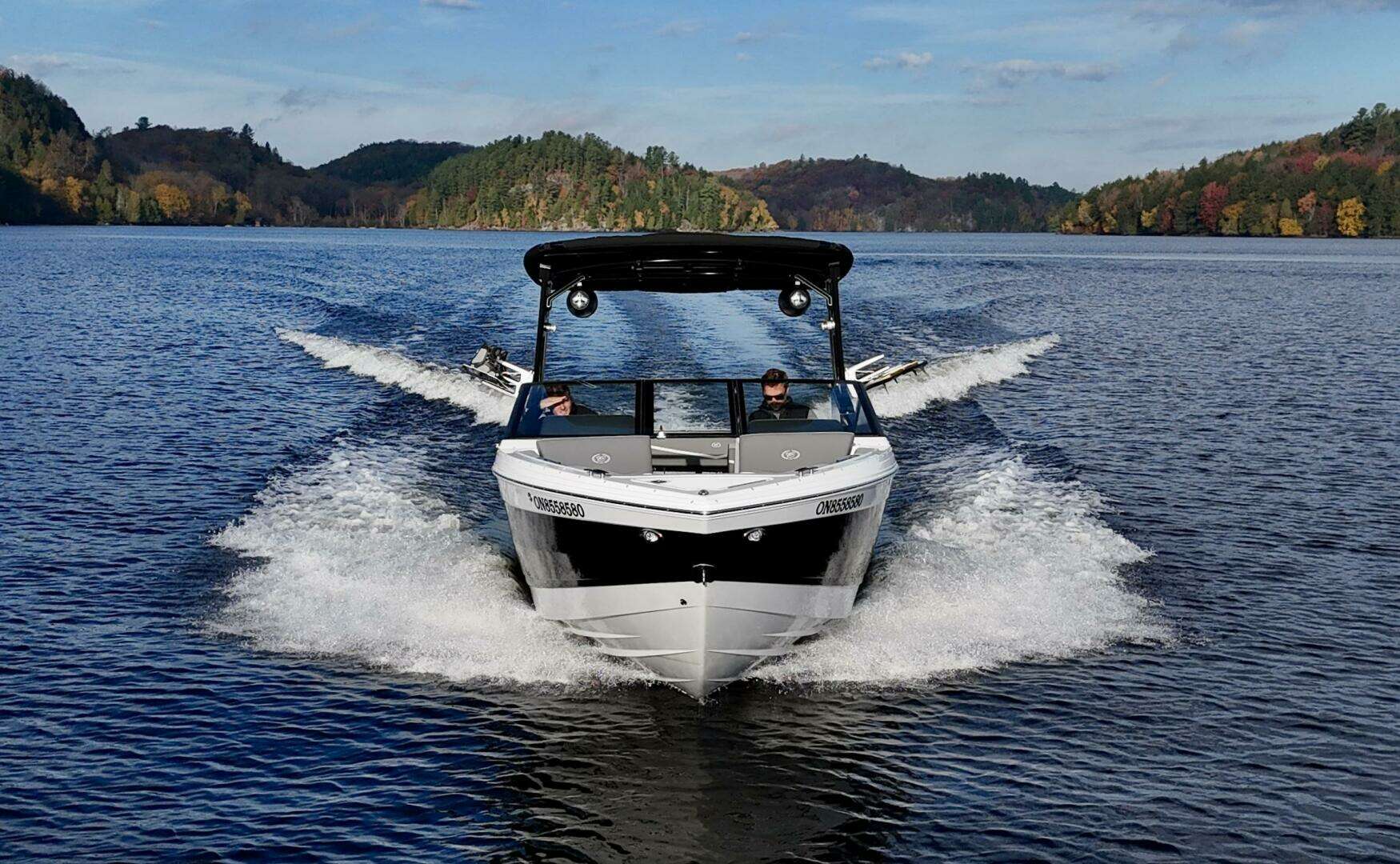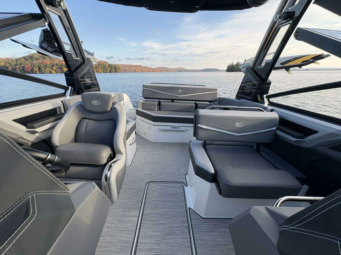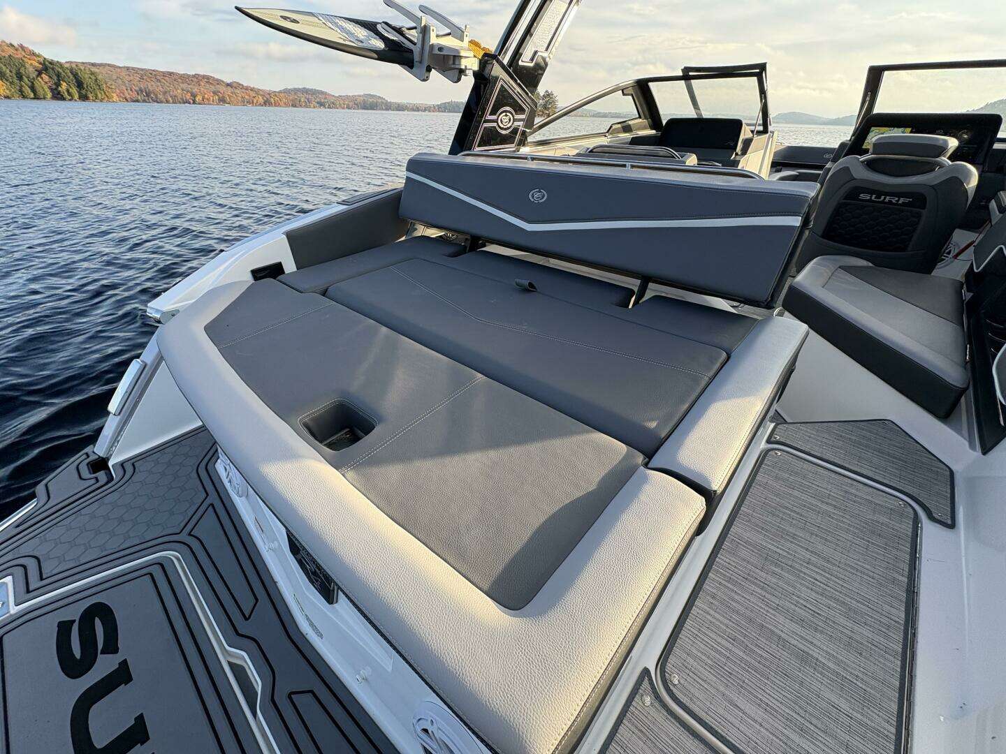 Premium features include: Upgraded 350hp Volvo Penta V8, upgraded JL audio, power tower with board racks and RGB lighting, auto fill/empty ballasts, (Malibu) surf gates, dual Garmin glass cockpit, large swim step, cruise control, and much more. The Cobalt Surf System delivers the cleanest waves of any surf boat. The system includes 6 hard ballast tanks, a specifically-designed surf hull, surf drive Volvo engine package and the best-in-class (Malibu) SurfGate™ technology that shapes the perfect wave. Spacious seating, high-end finishes, and Cobalt’s legendary ride quality make this the ultimate 24’ surf boat.