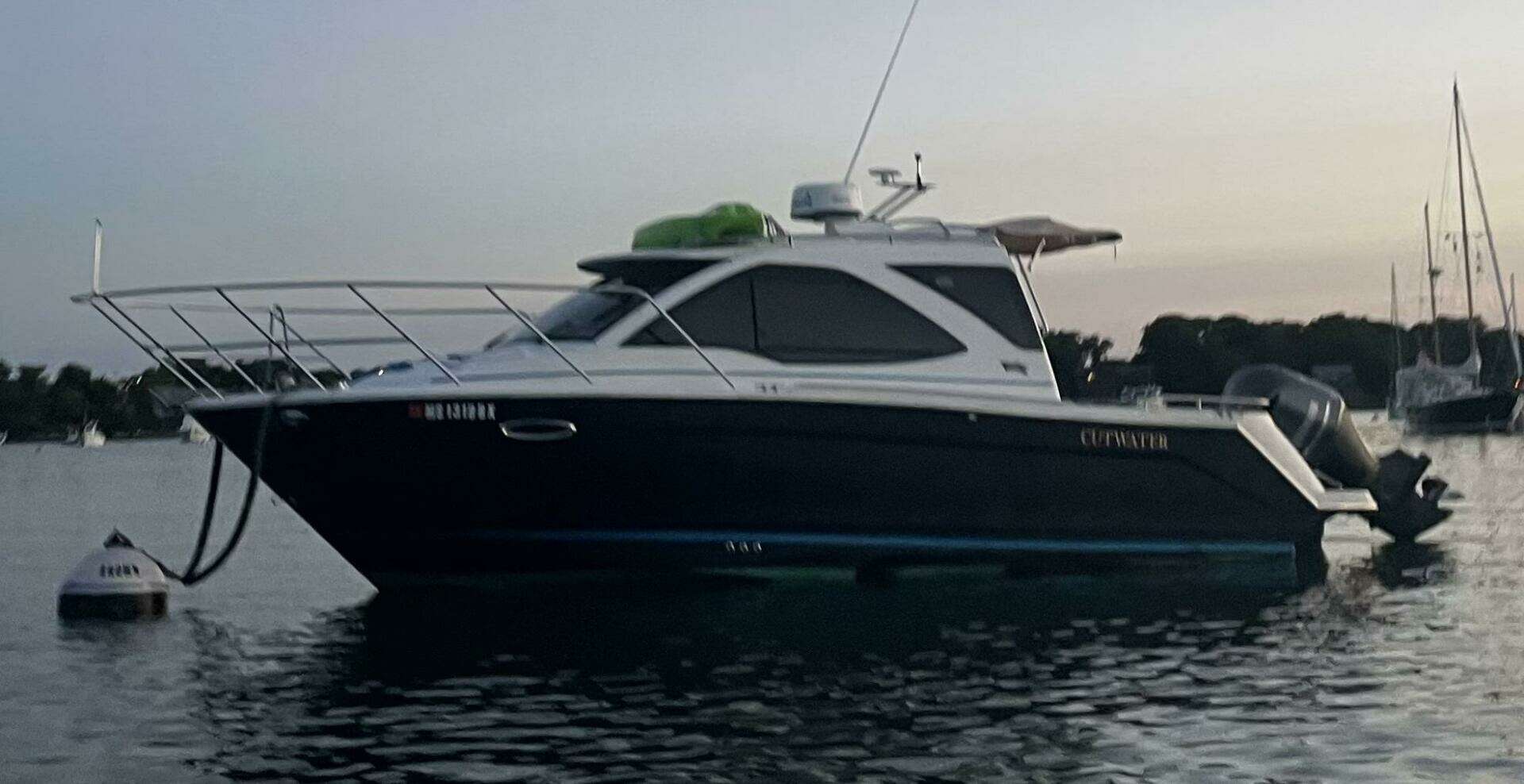 This Cutwater is a great family boat that is easy to tow and put in anywhere. Big boat features like a new boat thruster make docking a breeze. Tons of seating and storage on this boat. Comfortably sleep 4-5 people.