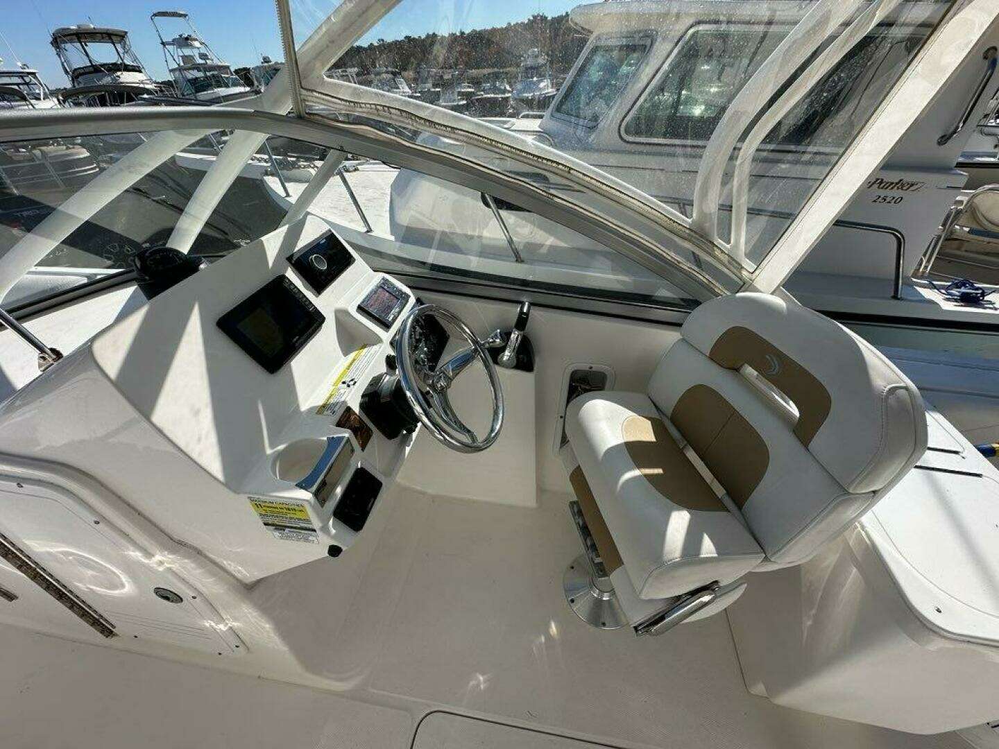 Nice and Clean 245 Edgewater Dual Console! Notable features include Single Yamaha 300 hp (575hrs), Recent Garmin Chart and FF as well as Fusion Stereo, Factory Powder Coated Hardtop, (3) Side enclosure, Enclose Marine Head as well as Anchor Windlass. Cockpit Coaming Bolsters replaced 2025.