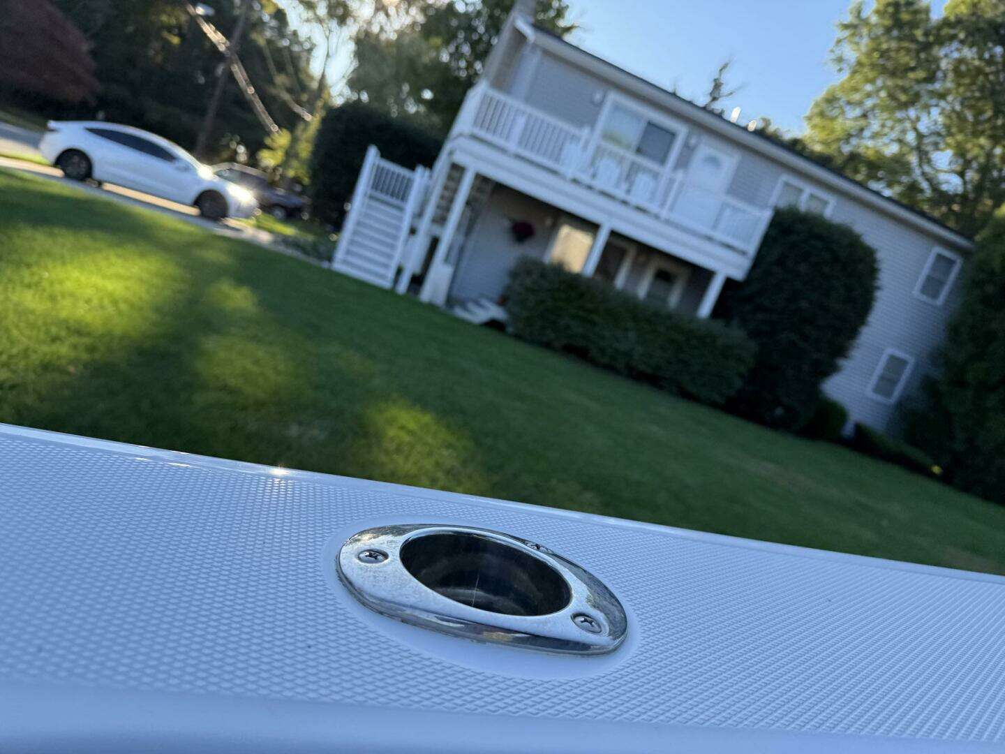 - Sport station: 3 position sliding sun roof/helm seat, poly cup holders, footrest, trim tab indicators, Garmin GHS 11 wired handset, Garmin 8610 Additional screen