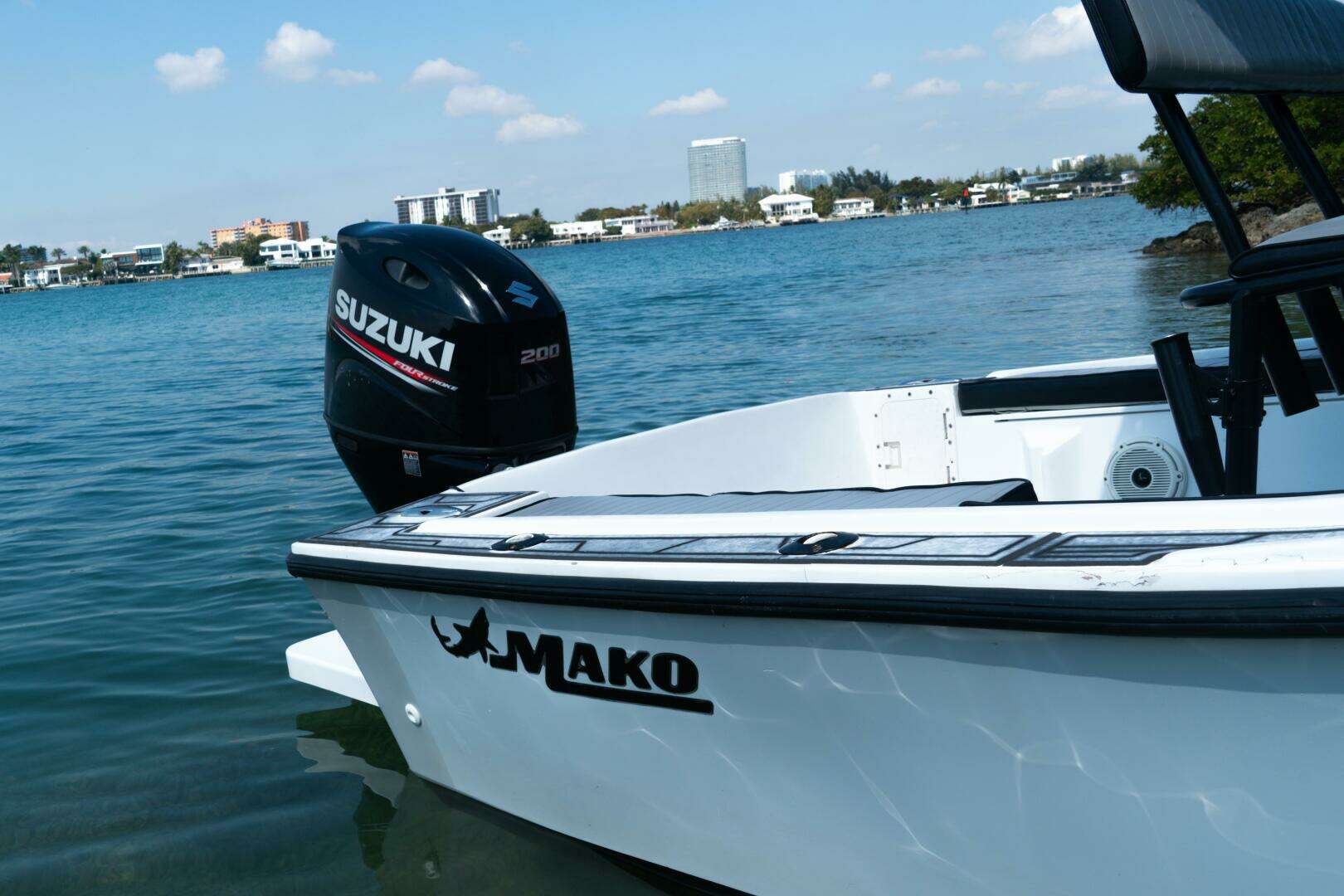 1980 Mako 214 CUSTOM with enclosed transom and swim platform that extended the boat to 23.5' 200hp Suzuki DF200ATX2 with 440 hrs under warranty, JL Audio, Garmin nav, and double axle continental trailer included.