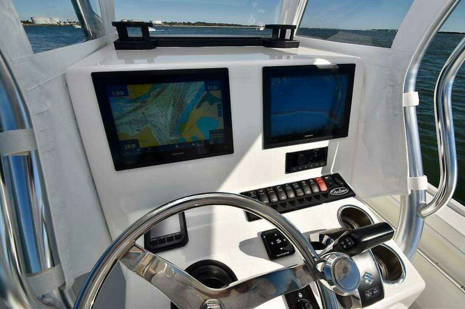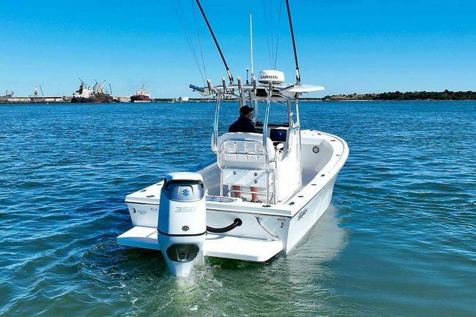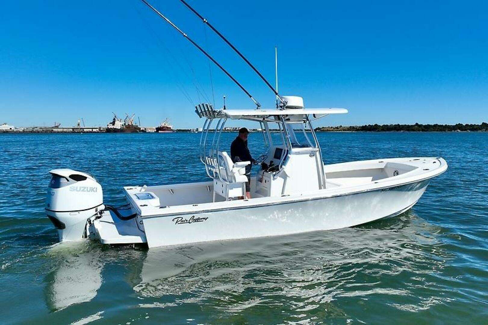 This 2025 Pair Customs 24DV is now available in Morehead City, NC. This boat is in amazing condition, and only has 92 hours on the Suzuki 350 with duoprop. Features include SeaKeeper Ride automatic trim tabs, Garmin radar, Sionyx night vision, twin Garmin multifunction displays, Fusion stereo throughout, 27 gallon live well, Gemlux carbon outriggers, and more.