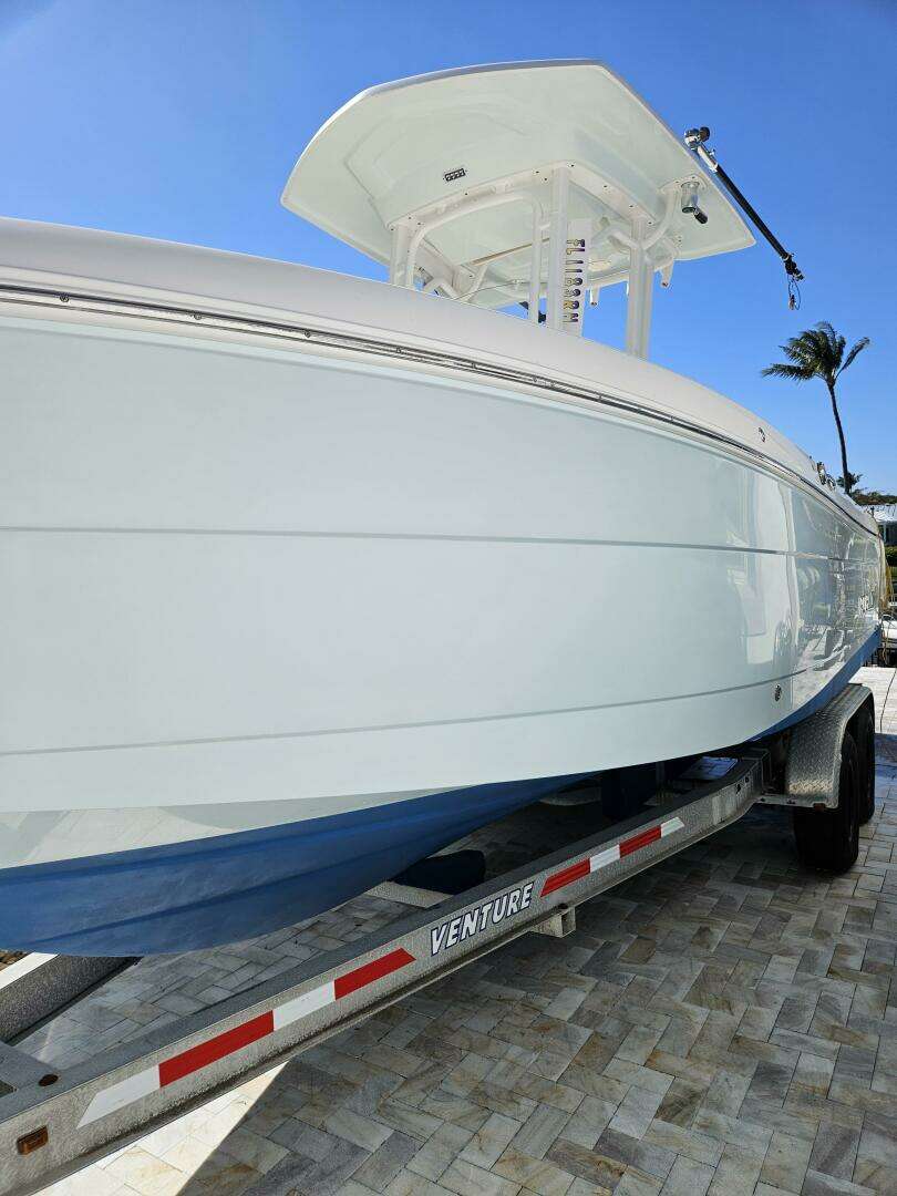 2017 Robalo 242CC with a trailer and 2 115 Fourstroke Yamaha engines. The boat has a full cover, Garmin electronics, and a galvanized trailer that comes with the sale