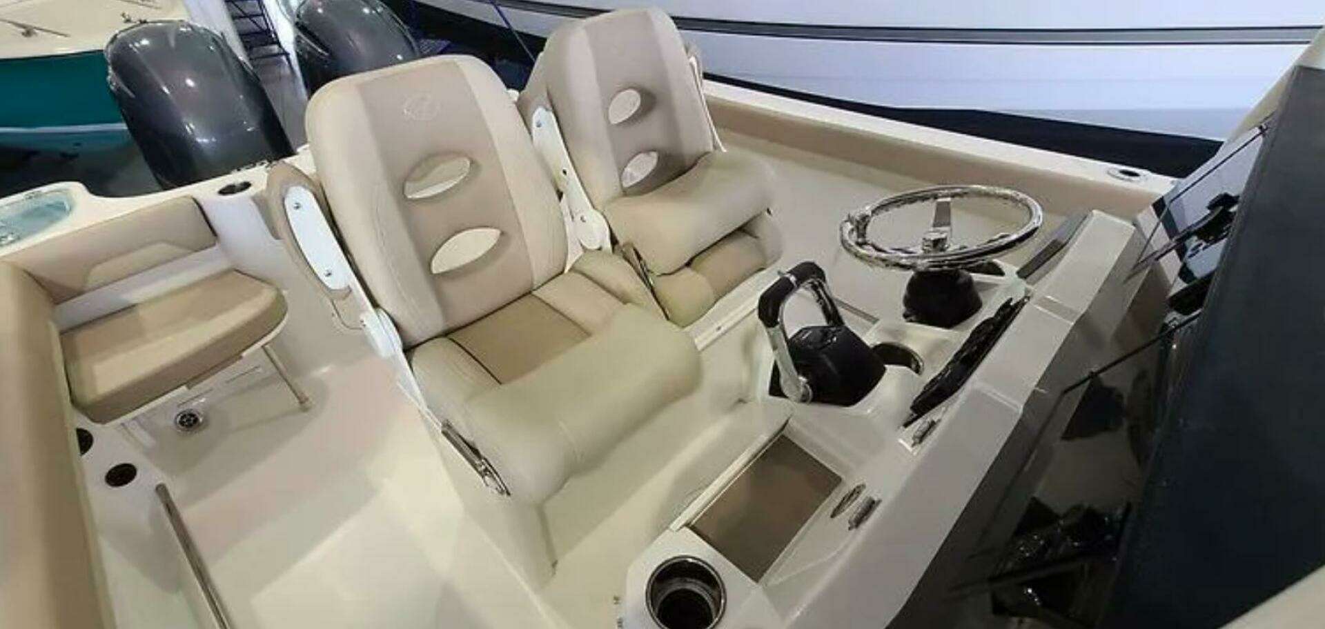 2021 Sailfish 242 w/Twin Yamaha 150HP This well-equipped 242 sailfish is one of the larger and better riding 24'+ boats on the market. It is well appointed with optional bow and stern seating, Garmin electronics, upgraded helm chairs, electric head and livewell. The twin engines allow you to venture further offshore to the fishing grounds and the extra power is appreciated on the longer cruises. This boat has been run in the great lakes and is currently located in Naples, FL.