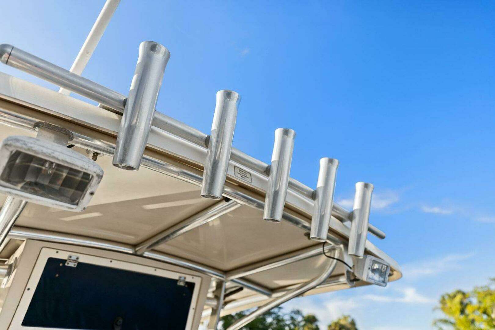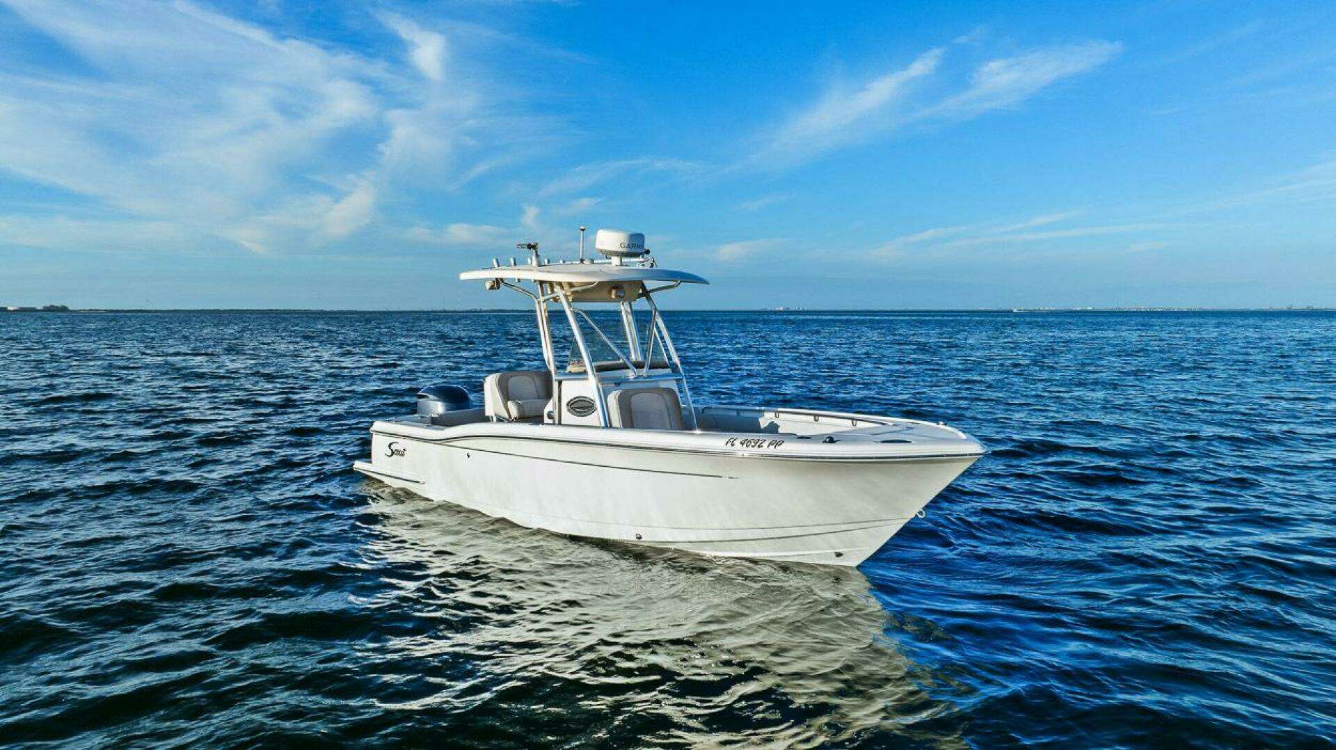 This 2011 Scout 245 XSF was the second forward seating model in the Sportfish line-up. The 245 XSF measures 24’5” long with a wide beam of 8’6”. This Scout is powered by a Yamaha F250 Fourstroke with 338 hours. This center console also contains a 125-gallon fuel tank, which allows anglers to get to the fishing grounds and back with unprecedented range. The technologically-advanced fuel efficient NuV3 hull means tremendous fuel savings, and combined with the bow flare assures a very dry and exceptionally smooth ride when slicing through rough seas. The 245 features insulated port and starboard fish boxes (40 gallons each), an insulated forward cooler (40 quarts) and the forward console seat houses an insulated console cooler (165 quarts). Two bait wells sit port and starboard aft, nine and ten gallons respectively – and there’s even room for a large bucket to fit inside the starboard well. This vessel can be seen at the owners home in St Petersburg by appoint.