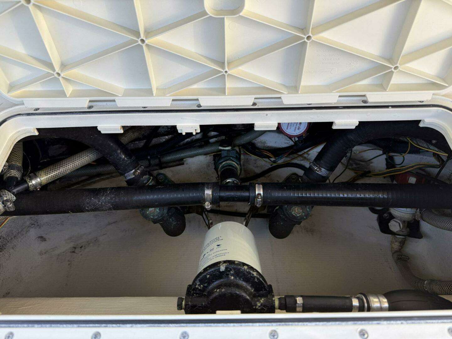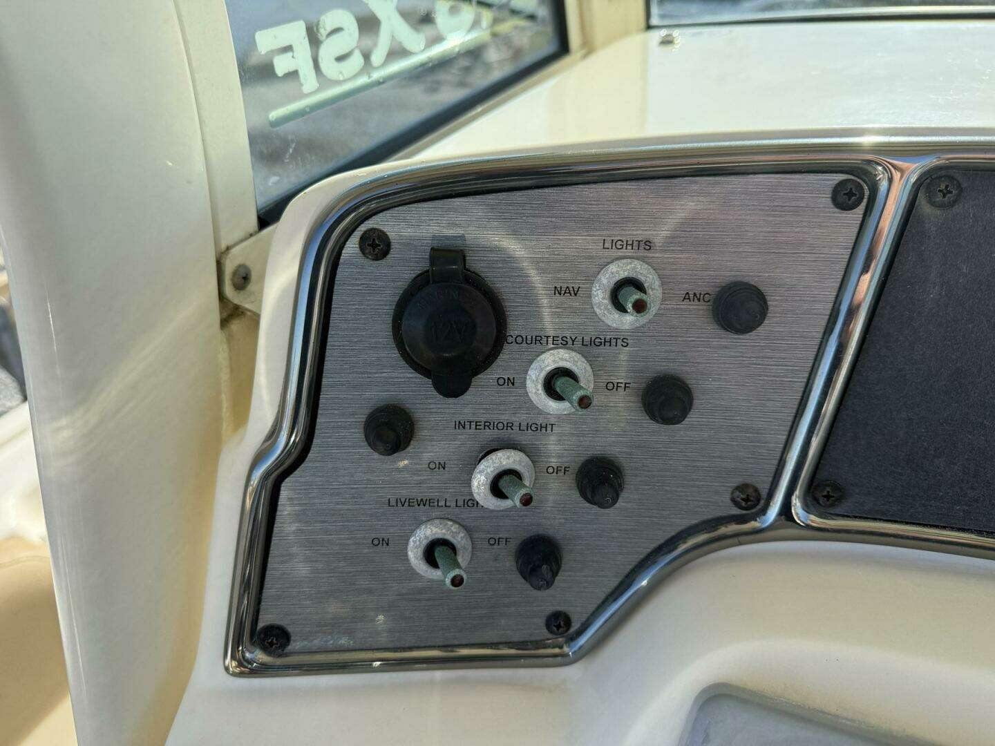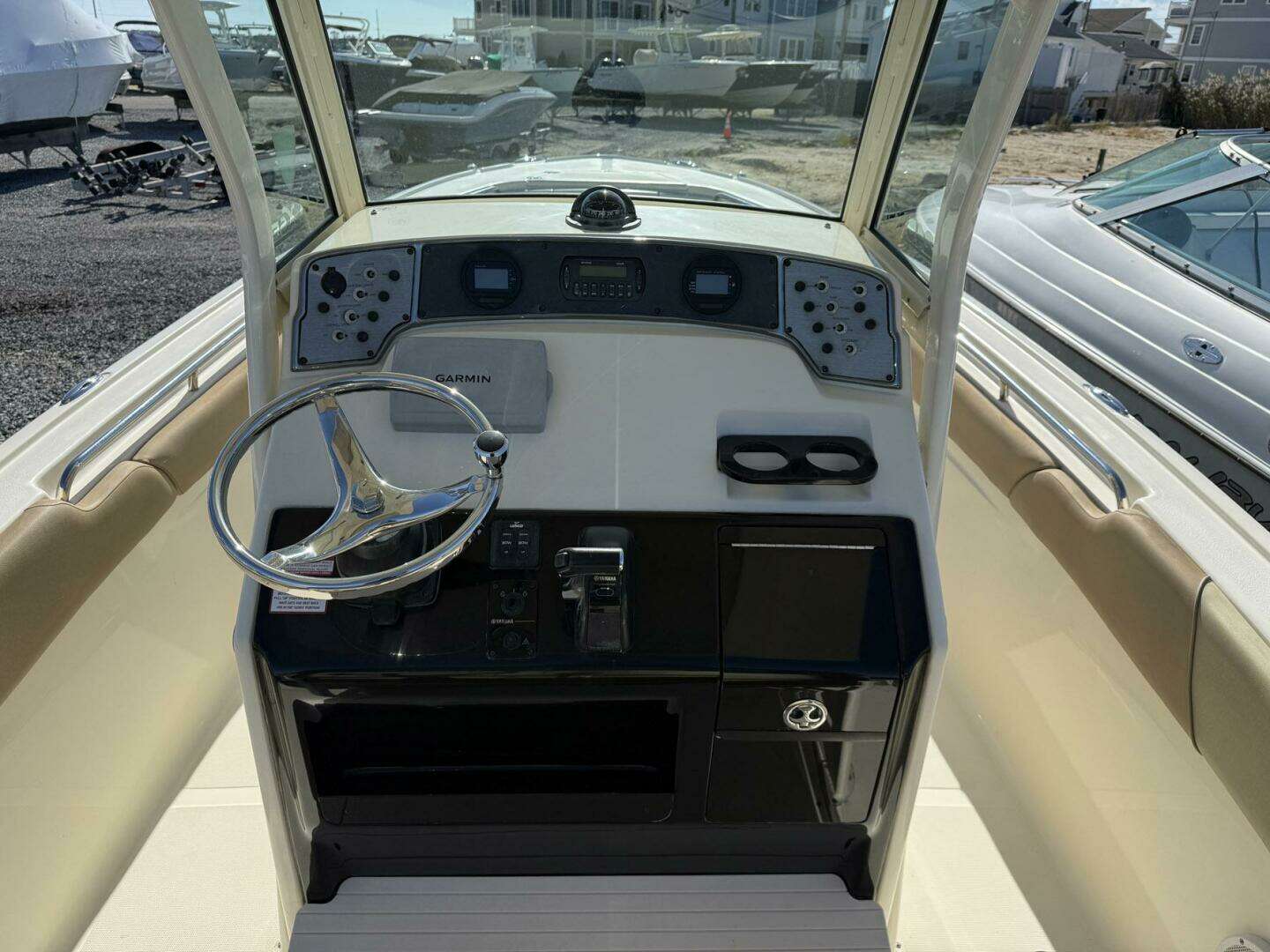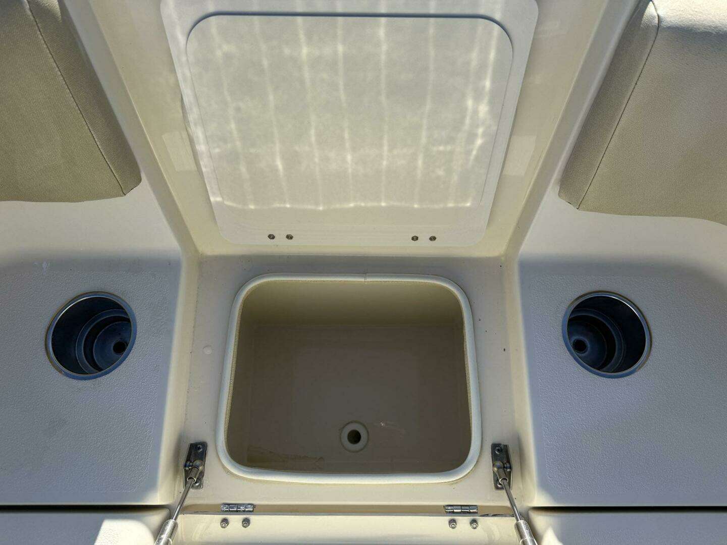 The 245 XSF is our second forward seating model in the Sportfish line-up. The 245 XSF measures 24'5" long with a wide beam of 8'6". This power packed center console also contains a 125-gallon fuel tank, which allows anglers to get to the fishing grounds and back with unprecedented range. A great running hull with 20 degree deadrise combined with the bow flare assures a very dry and exceptionally smooth ride when slicing through rough seas. The 245 features insulated port and starboard fish boxes (40 gallons each), an insulated forward cooler (40 quarts) and the forward console seat houses an insulated console cooler (165 quarts). Two bait wells sit port and starboard aft, nine and ten gallons respectively - and there's even room for a large bucket to fit inside the starboard well.