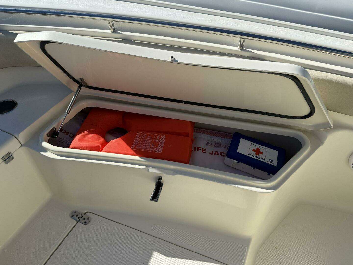 Explore the shallowest waters with the 240 Bay Scout. With a shallow 13-inch draft and deep-V hull design, even the most secluded areas become easily accessible. The 240BS features an 85-gallon fuel tank and a reliable Yamaha engine. It also boasts a spacious deck with a non-skid surface and ample storage underneath. Additional fishing features include locking rod storage units on both the starboard and port sides, as well as a large beam-width storage box for all your gear.Explore the shallowest waters with the 240 Bay Scout. With a shallow 13-inch draft and deep-V hull design, even the most secluded areas become easily accessible. The 240BS features an 85-gallon fuel tank and a reliable Yamaha engine. It also boasts a spacious deck with a non-skid surface and ample storage underneath. Additional fishing features include locking rod storage units on both the starboard and port sides, as well as a large beam-width storage box for all your gear.