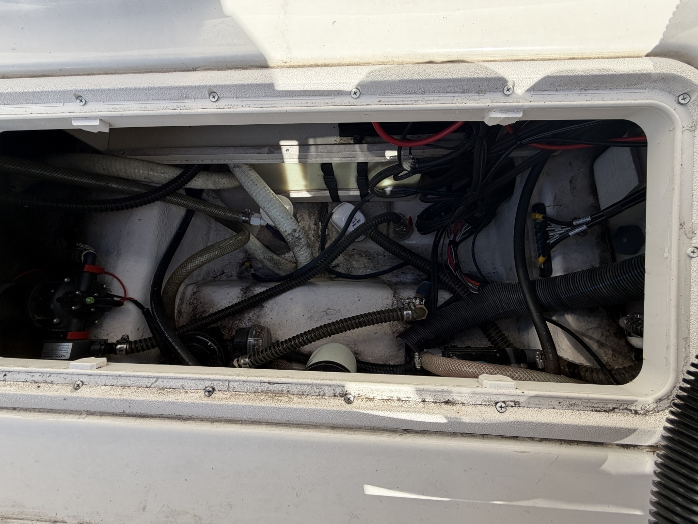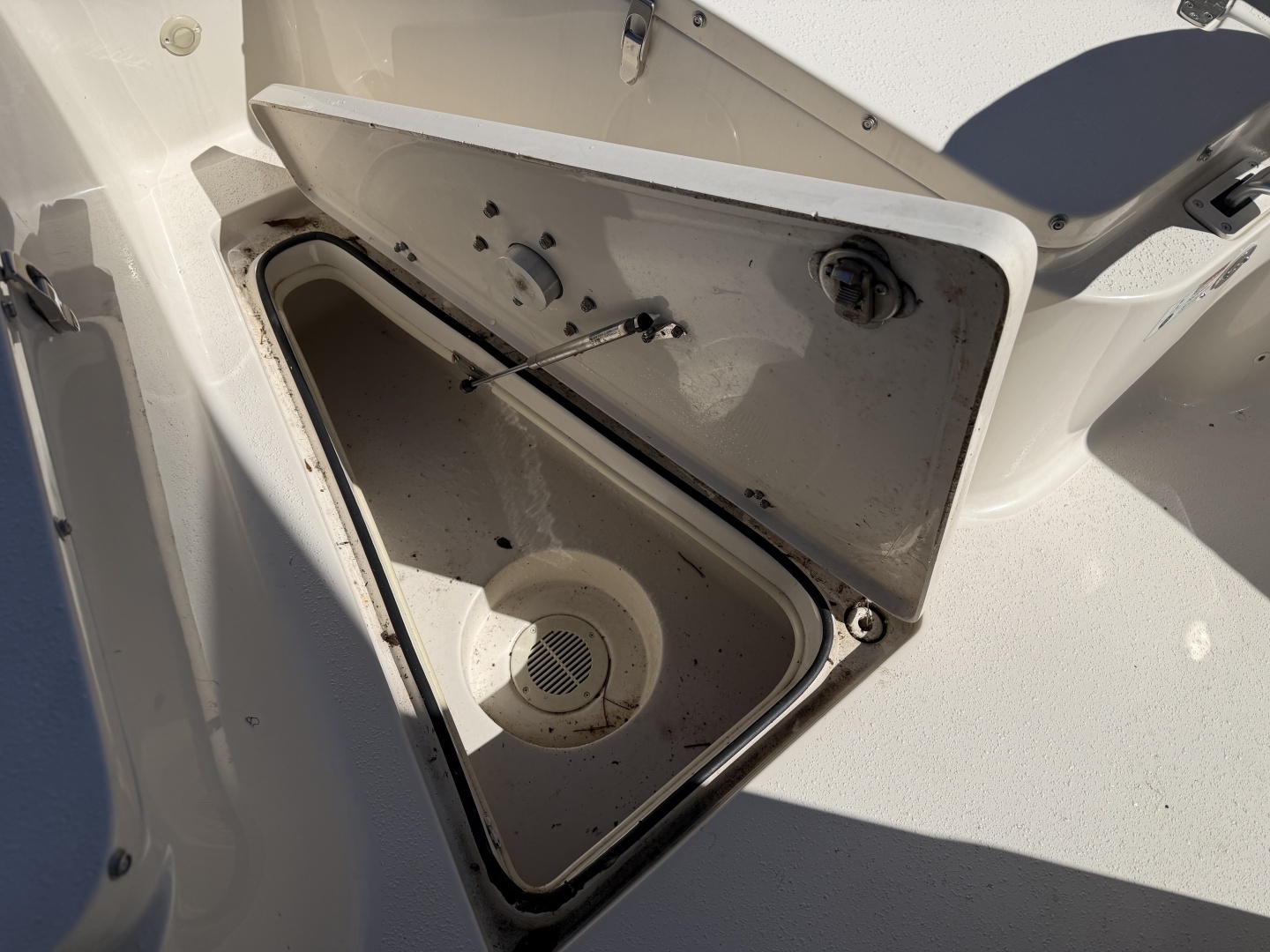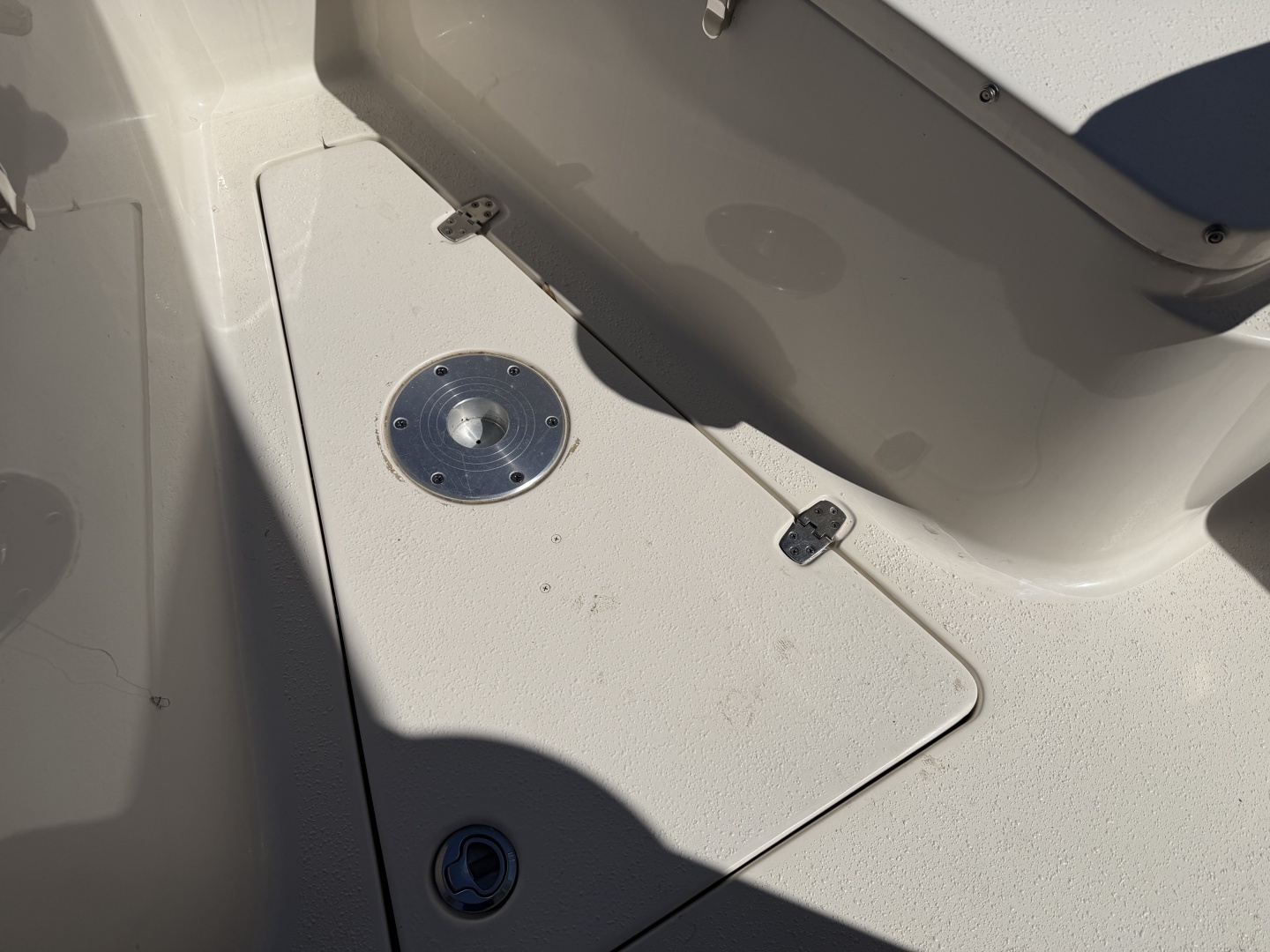 This 2017 Sea Chaser 24 HFC offers a perfect blend of performance and comfort. Its white hull with an evening-sky blue stripe makes a statement. Equipped with a 300-horsepower Evinrude with only 191 hours, it features abundant rocket launcher rod holders for fishing enthusiasts. A full private head ensures comfort for extended trips, while a windlass makes anchoring easy. The side door offers convenient boarding, and underwater lighting adds a touch of ambiance for night excursions. With ample rear storage compartments, a freshwater tank, a stereo system, and a trailer included, this boat is fully equipped and ready for adventure.