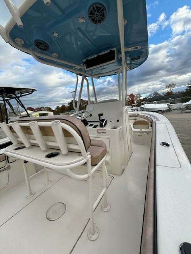Whether you're heading offshore for fishing, exploring the coast or pulling a tube for family fun, the 24 HFC checks every box for on-the-water adventure. For boaters who love to raft up and swim, the 24 HFC comes standard with a portside entry door and a stern telescoping ladder for easy and safe access in and out of the water. Throughout the 24 HFC, find only the highest-quality stainless steel components, such as flush-mounted cup holders, rod holders and fold-down cleats. For fishing enthusiasts, keep more bait onboard inside the built-in 25-gallon stern baitwell, which easily doubles as dry storage when needed. Families and charter captains have plenty of room onboard the 24 HFC with the spacious U-shaped bow seating area, console front passenger seat and stern bench seat with a removable backrest.
