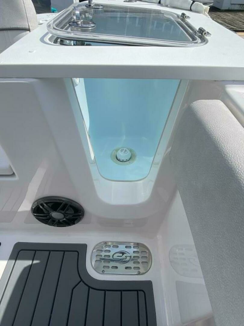 2022 Sea Fox 248 Commander with an Artic Blue Hull, powered with a Yamaha 300 4.2 V6 w/digital throttle, only 55 hours, all services are up to date, Existing warranties are in place till 6/2025, Garmin electronics, Fusion upgraded sound system, Lenco trim tabs, Pro & LED packages, Wireless phone charger, Windlass anchor, Electric head w/holding tank, Battery charger, Ski pylon, Pressurized live Well, Fresh & raw water washdown, Underwater lights, Swim ladder, Seadeck throughout cockpit, Ultima hardtop with 4 sided spreader lights, Bow filler cushion, Bow shade canvas, Cockpit mood lighting, Covers for helm, leaning post & front seat, 3 sided isinglass enclosure, Coast guard package............. plus, much more