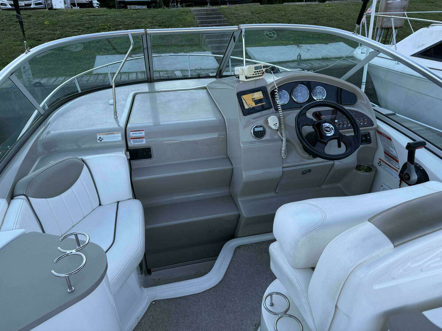 The Bravo Three Sterndrive makes the boat very maneuverable even while docking. The boat has plenty of power and gets up on plane quickly and cruises at 20-25mph at moderate RPMs.