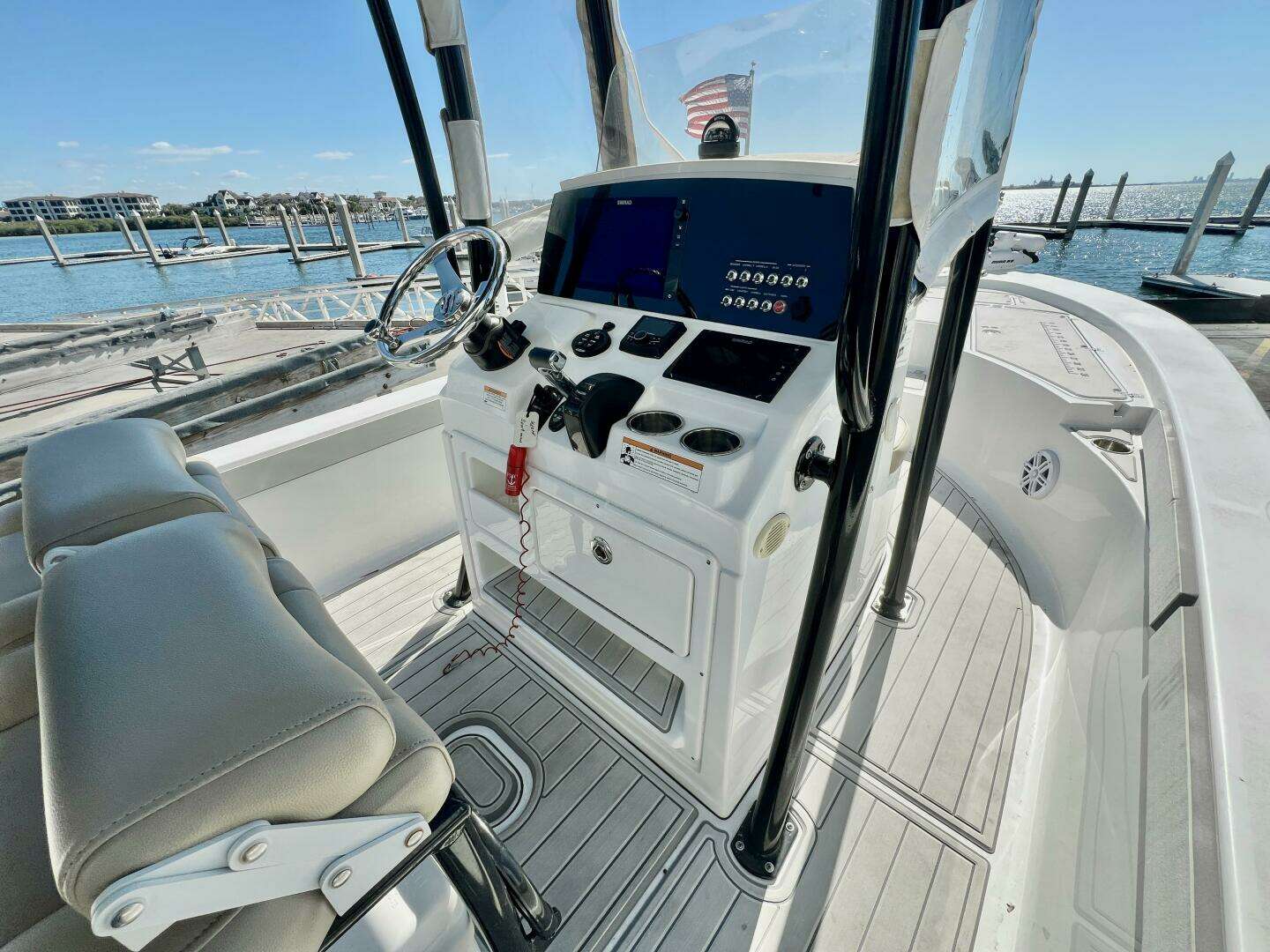 Just 146 hours on the fuel efficient and reliable Yamaha F300, power pole, trolling motor, full SeaDek cockpit, black hull (buffed/waxed Jan 2026), indoor stored and ready to go boating today!