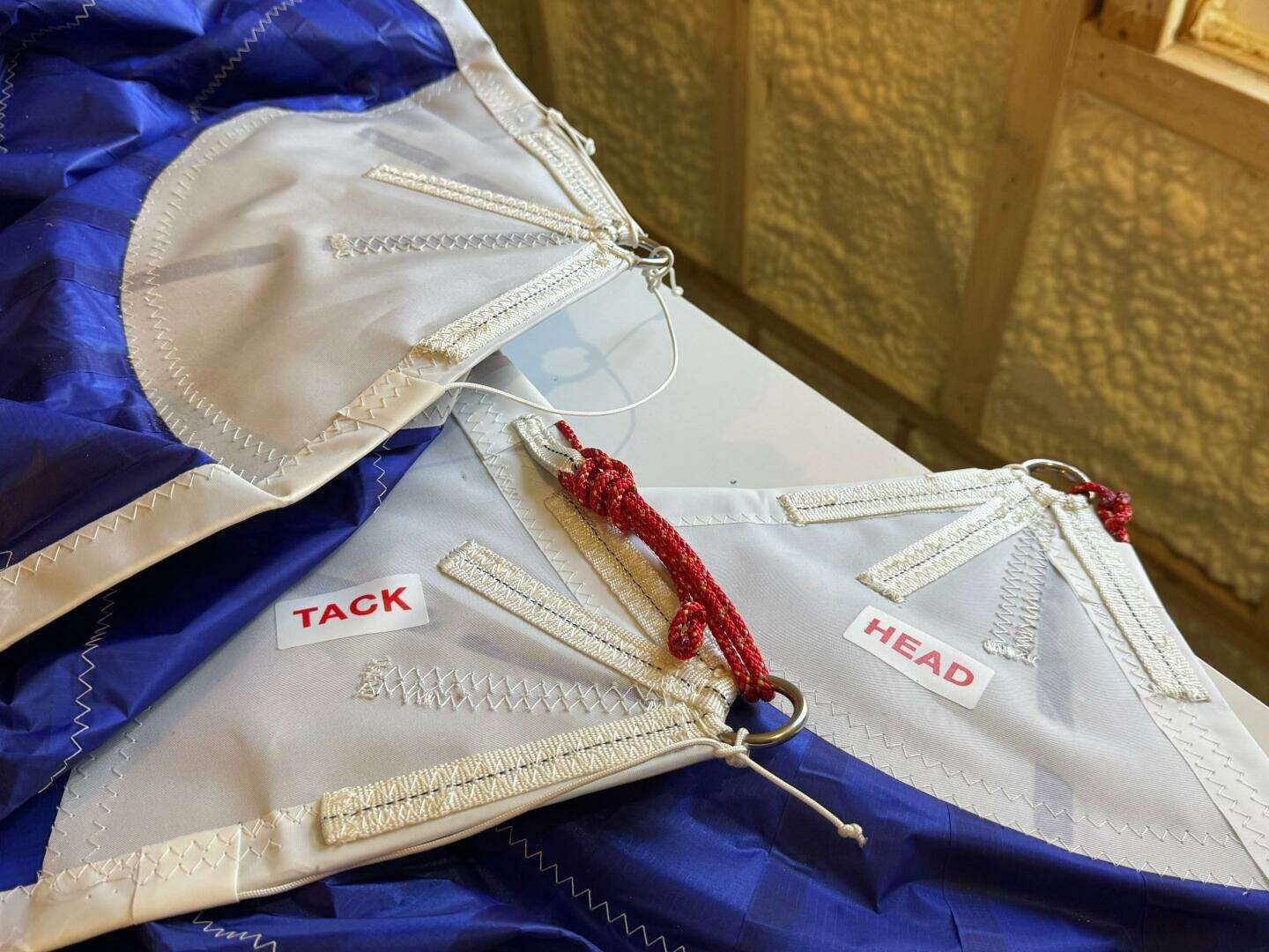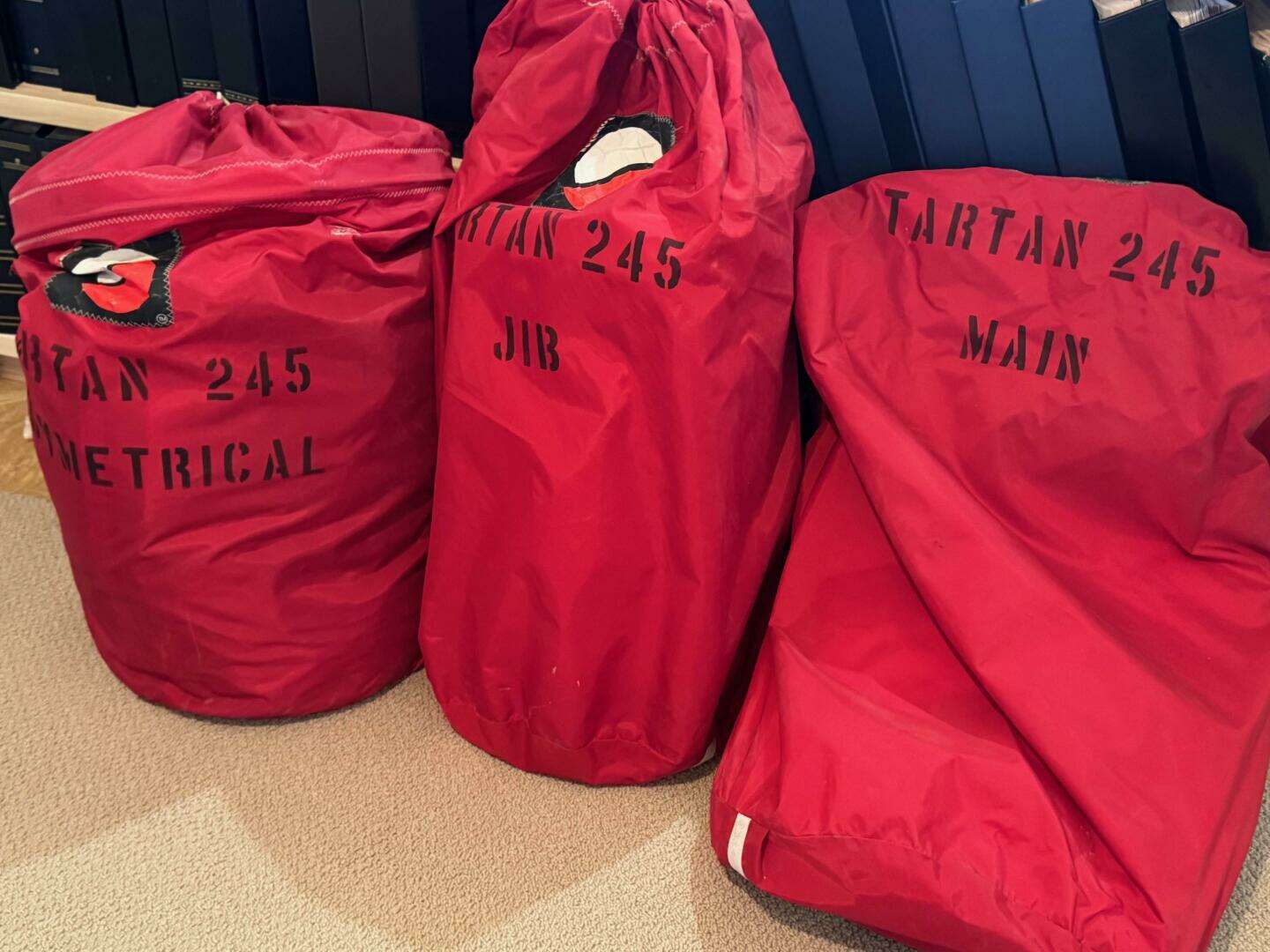 - Custom mainsail, jib, and asymmetrical spinnaker by Sobstad Sailmakers