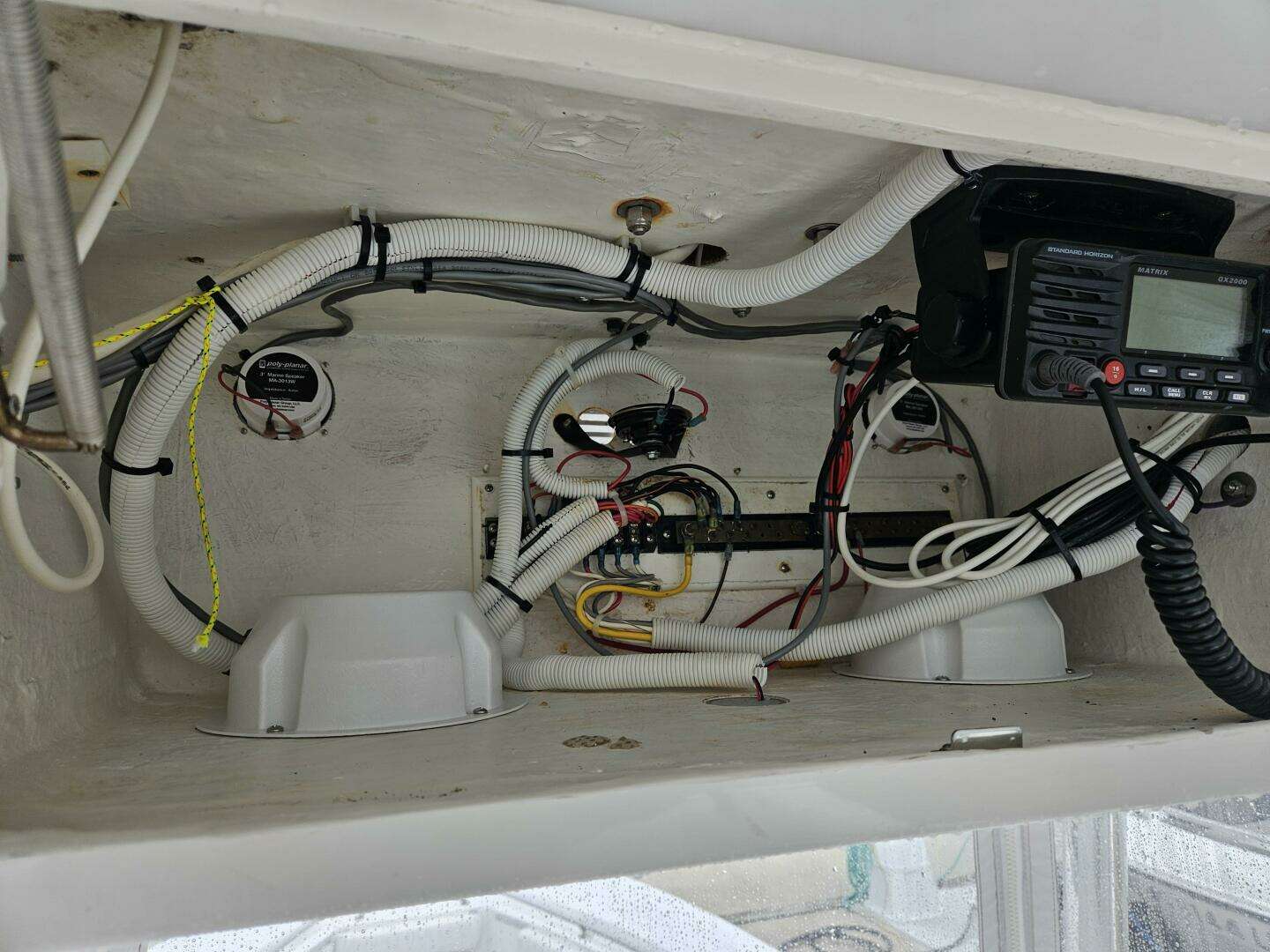 - Standard Horizon VHF with remote mic + 4’ antenna
