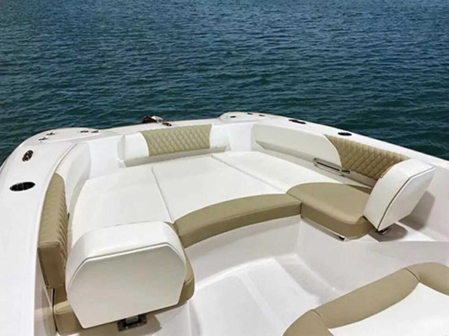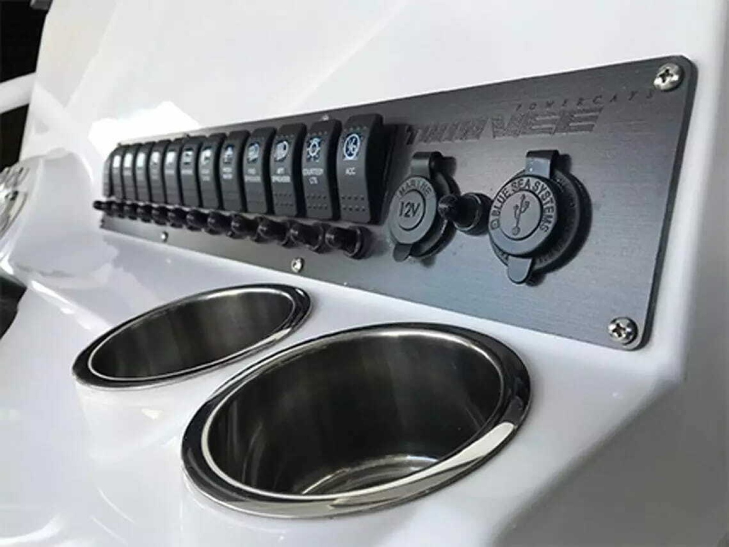 Contrasting textures, integrated blue LED lighting and recessed alcoves add interest while stainless drink holders, flush mounted cleats and a streamline elegance confirm Twin Vee’s position in the forefront of multi-hull design and PowerCat Performance.