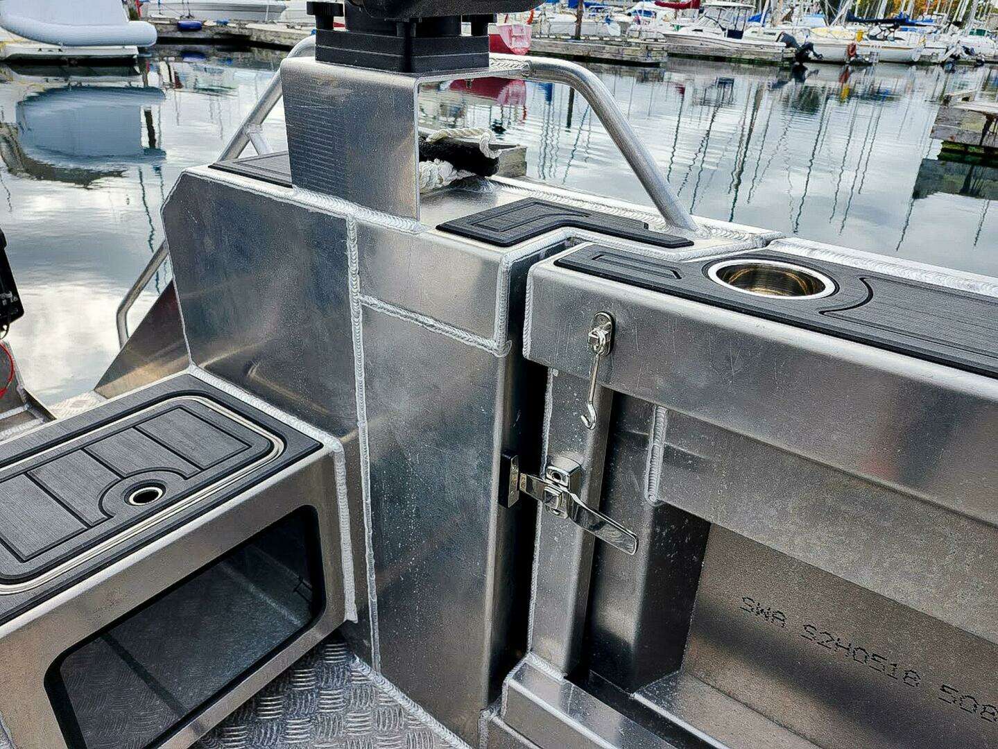 - Water tight bait tank with cutting board ontop