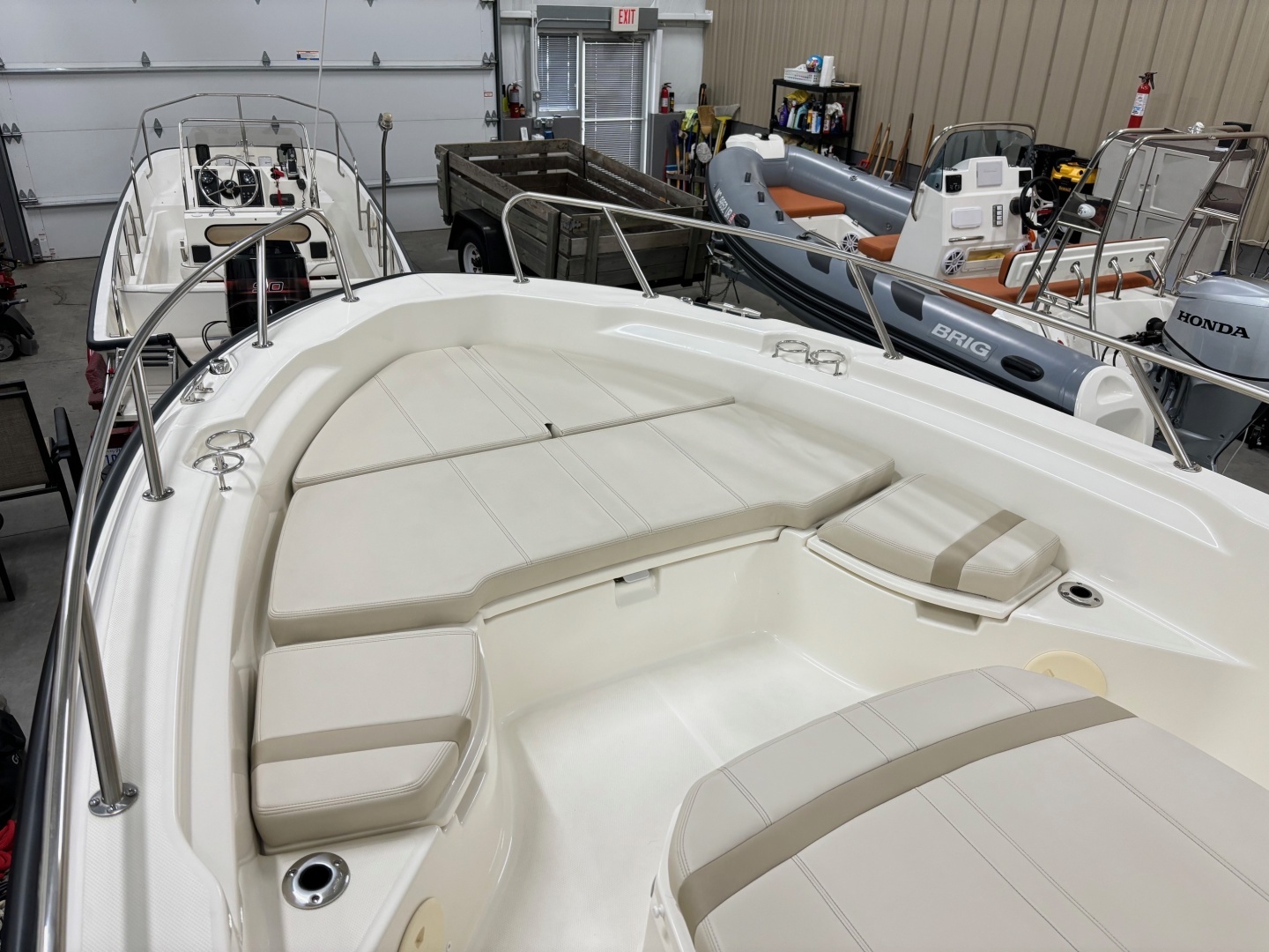 The 2024 Boston Whaler 250 Dauntless is already one of the most versatile center consoles on the water, and this one stands out even more thanks to its special configuration without a T‑top. The open profile gives the boat a sleeker look, a wider casting range, and—importantly—much easier storage and clearance in garages, barns, and lifts. Powered by a Mercury 300 Verado with only 70 hours, this Dauntless was sold brand new in Northern Michigan and only sat in the water when being used. It shows next to new and there will be no disappointments on condition anywhere. This whaler has a MagicTilt trailer, Simrad touchscreen MFD with Plotter/Sonar/Engine display, Simrad VHF Radio, Trim tabs, Helm cover, Full mooring cover, 2 Separate Live Wells and more! If you’ve been looking for a late‑model Whaler that’s easy to own, easy to store, and loaded with performance, this one checks every box! This boat is serviced and ready to go for the summer. Call or email us for all the details.