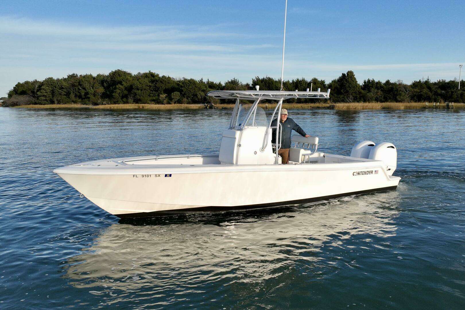 This 2021 Contender 25 Tournament is new to the market and in amazing condition! This boat comes equipped with a Garmin multifuction display, Garmin VHF, Fusion stereo with subwoofer, forward cooler seating, ample fishbox space, livewell, freshwater washdown, and low-hour twin Yamaha 150s.