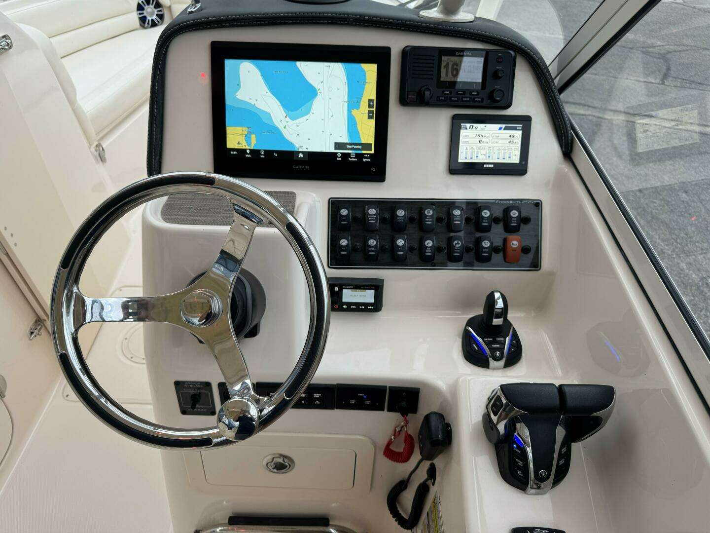 This will be an Amazing Opportunity for someone who is considering a new Grady-White Freedom 255 Dual Console but would like to save a TON of money! This is a one owner, Lift Kept (in the summer), Stored inside heated in the winter, 100% Freshwater boat with all the good stuff on it and it includes a Beautiful Phoenix trailer! This boat only has 45 hours on it and has the optional Yamaha digital 200's with Helm Master EX Joystick with full maneuverability! The option list on this one is long and includes: Helm Bench Seat w/Deluxe Bar & Sink, Deluxe Companion Seat w/Electric Lounge, Windlass, Cockpit Step, Dockside Power w/Battery Charger, Marine Head w/Electric Flush (Never Used), Coastal Fog Gelcoat, Bow Table, Black Front/Side/Aft Curtain, Bow Cover, Cockpit Cover, Garmin Electronics Pkg and more!! There is no bottom paint, just clean factory gel. The Yamaha Outboards are under warranty until 8/28/2026. This model brand new today with these options and trailer will be close to 275k, that's a savings of about 50k! Call or email us for all the details!