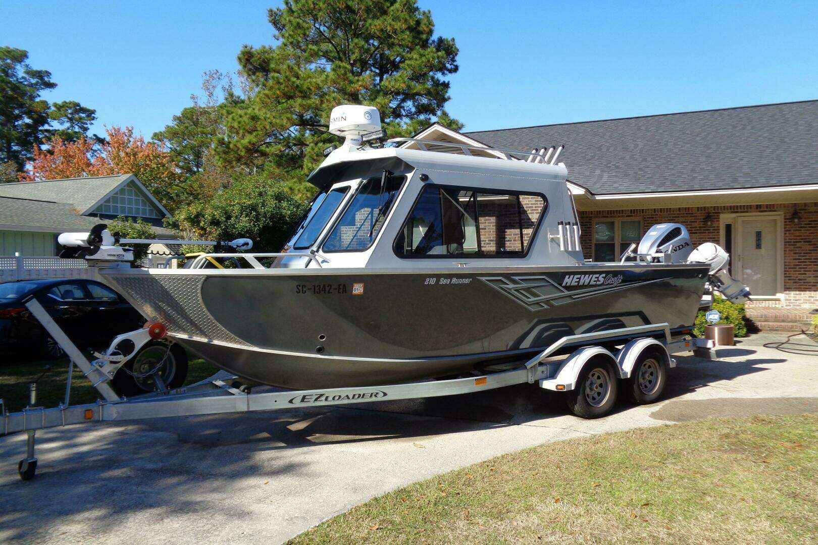 This Hewes Sea runner ET Hardtop is perhaps the very best multi fish vessel made under 30', and this one has all the equipment you need to hit the water and go anywhere the fish are. Maintained with the best of care and maintenance by its original owner there is simply nothing to do but enjoy and start catching fish! Powered by a "like New" 200hp Honda main engine with the optional 10hp Honda Kicker/troll engine is like new! Included is a 2022 EZ loader tandem axle trailer with disc brks in new condition, Garmin 1242 GPS chart and sonar plotter, Compass, sidetrack 3 pole holders, 24volt Minn Kota troller, 2 group 24 AGM batteries, Phanton 18 Radar with riser and much more. This package is truly turn key, ready to fish. The only reason for selling is owner is purchasing a larger Hewes! Package is located in N Myrtle beach SC and is ready to be shown. Don't miss this one, it will not last long