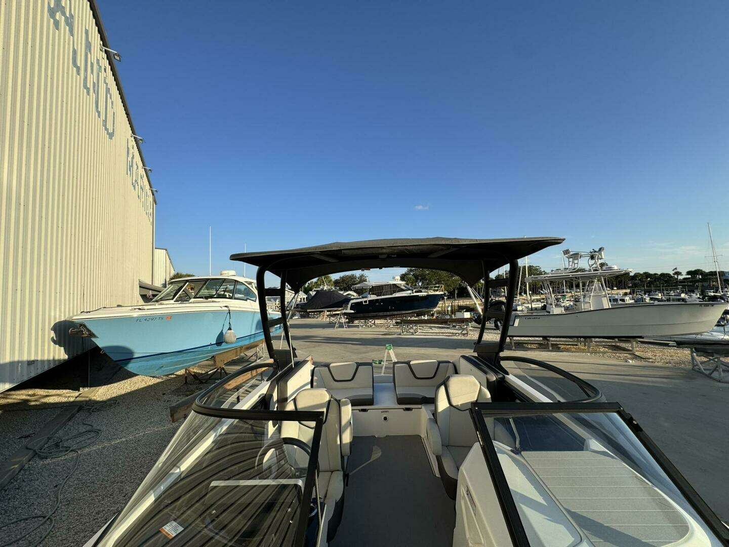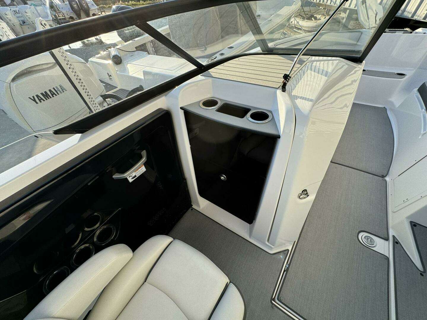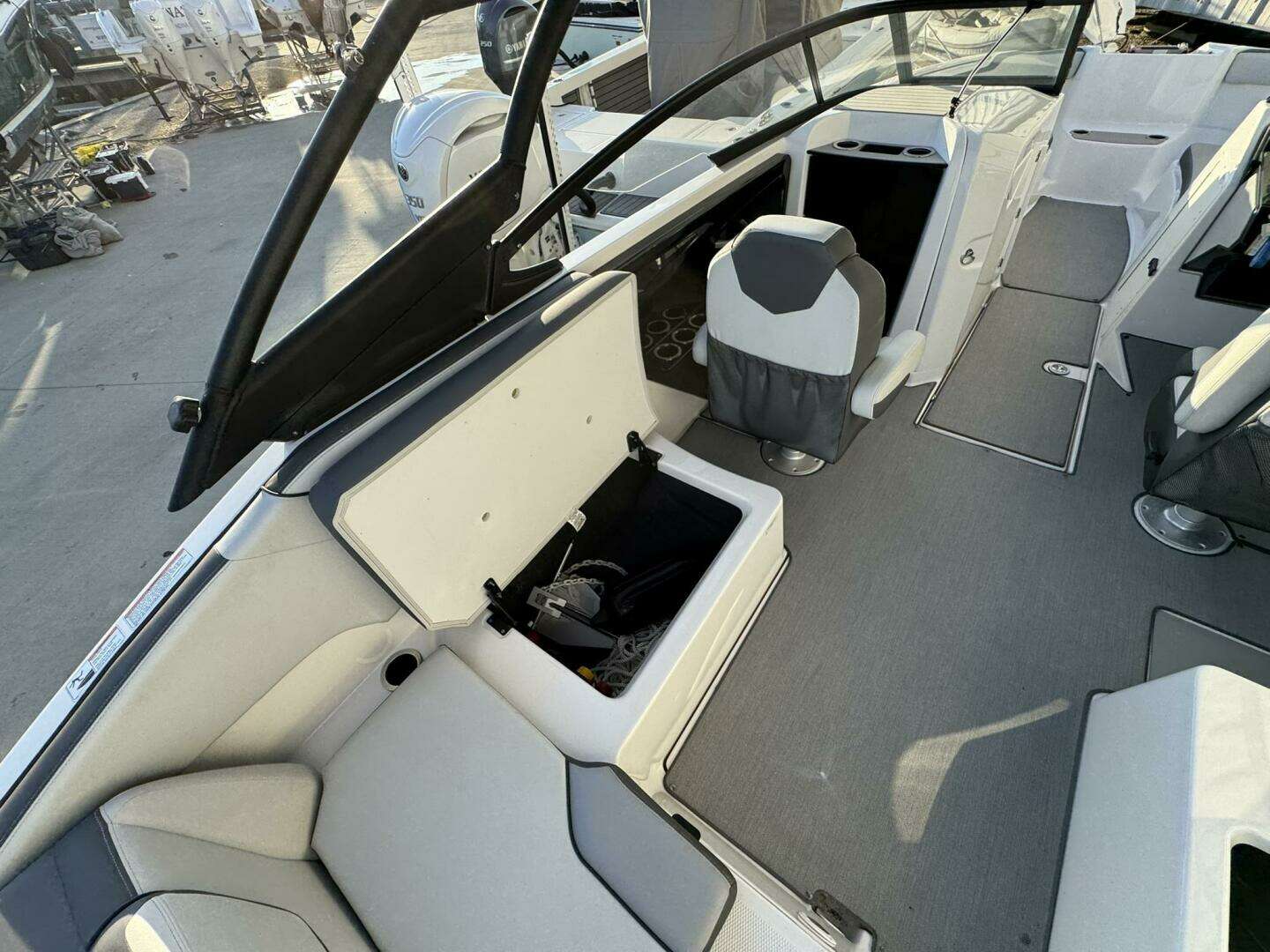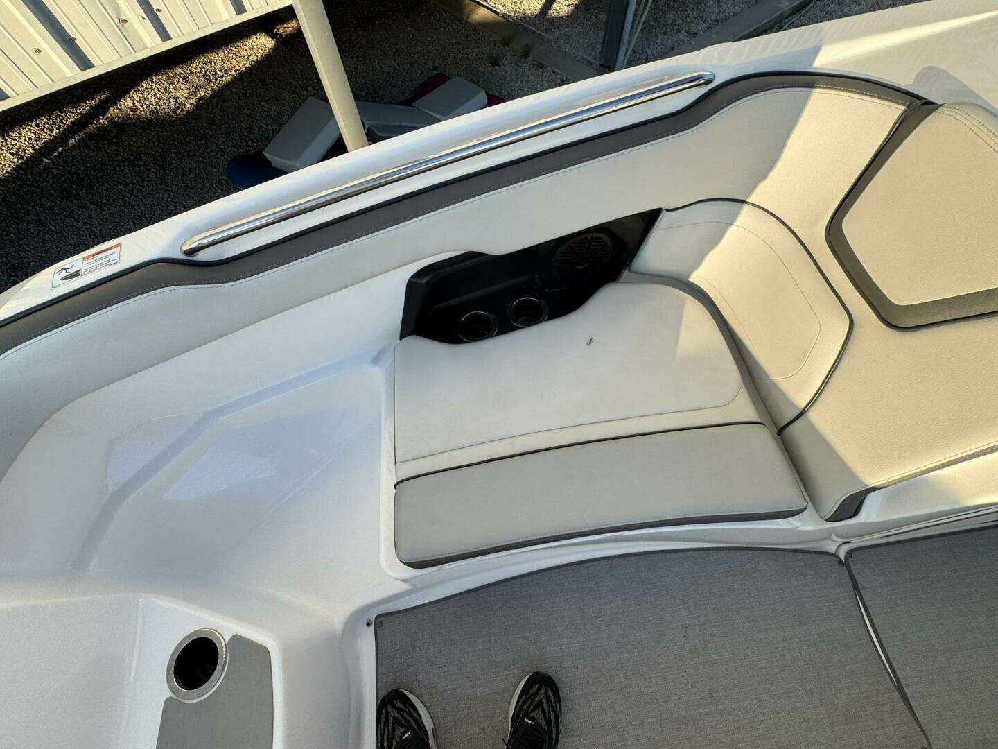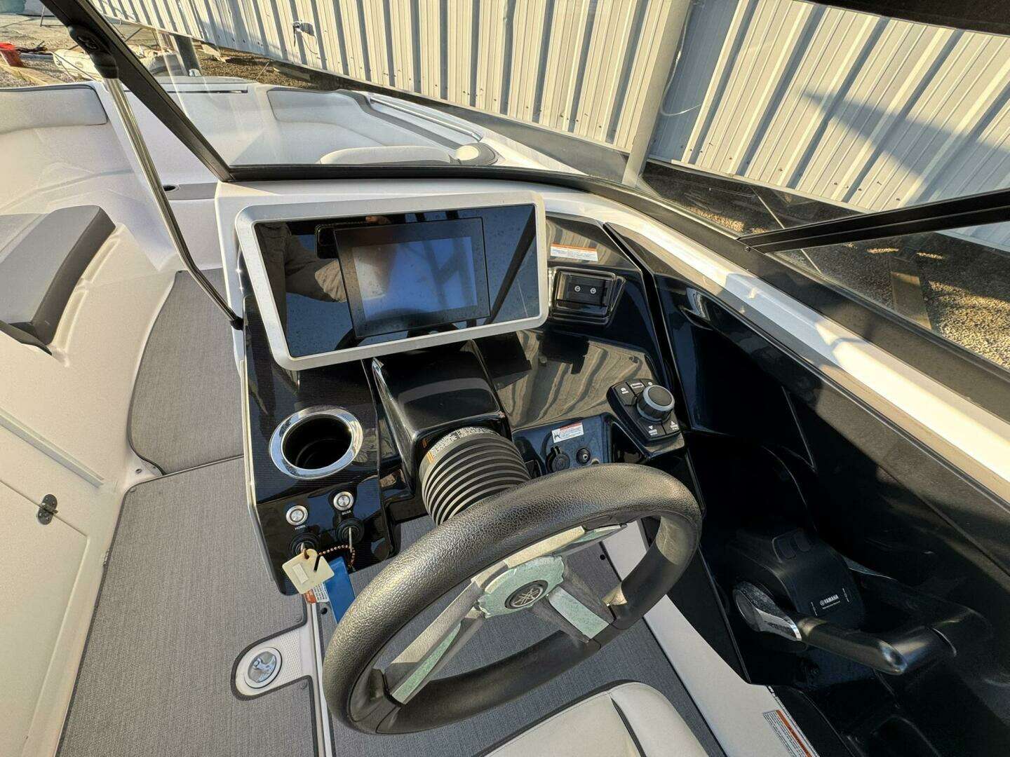 | Notable Upgrades: ShoreLand’r tandem-axle bunk trailer (included) - Yamaha No-Wake Assist & Cruise Assist - Large in-floor ski/board locker - Two-tier Yamaha swim platform w/ reboarding ladder - Bluetooth-ready marine stereo with cockpit speakers |