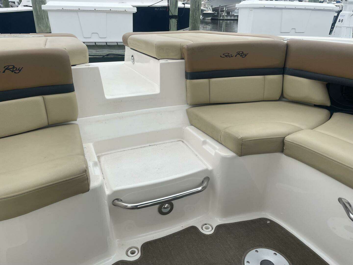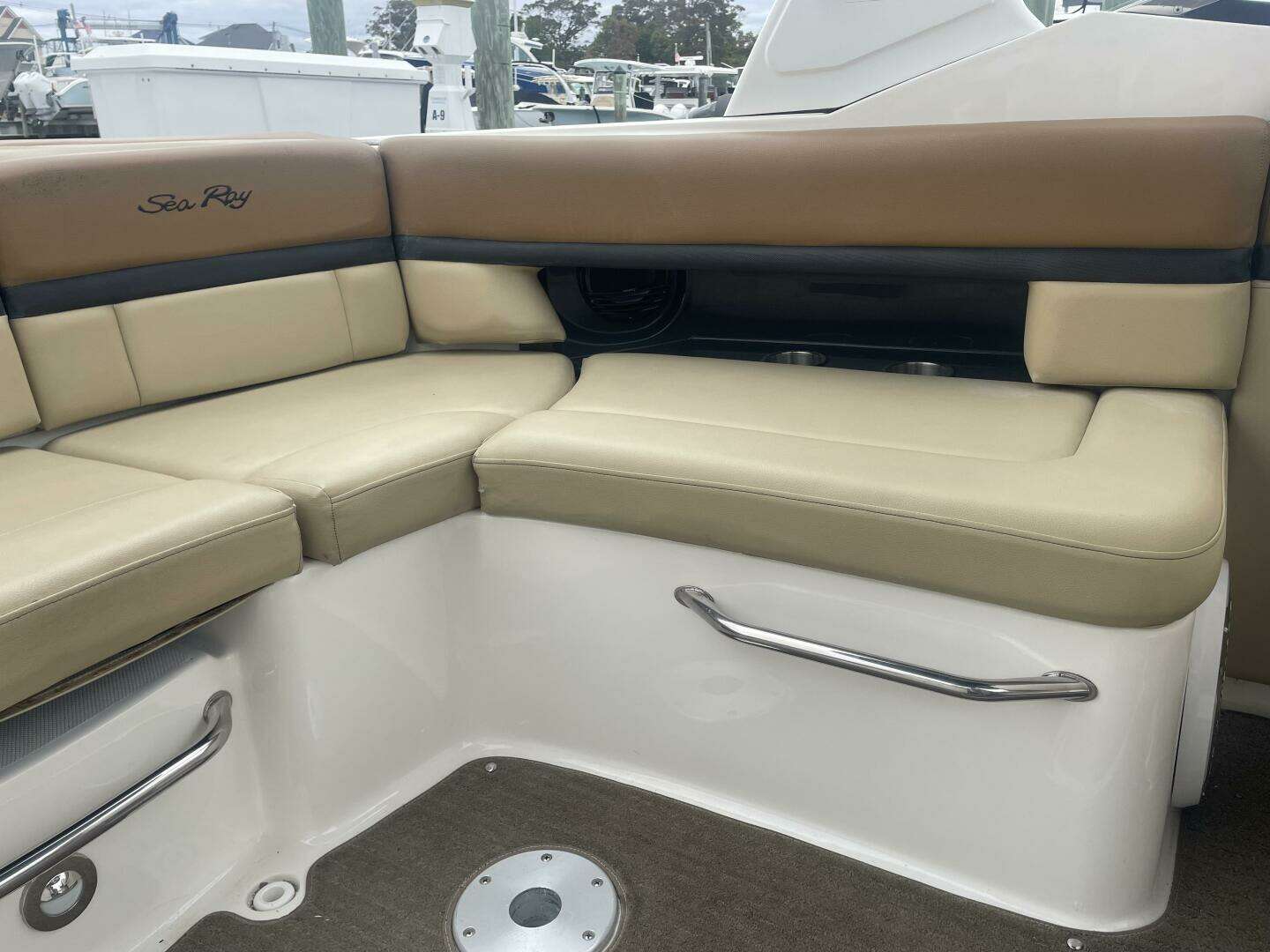 - Semi-Circular Aft Lounger w/Fiberglass Storage Base & Gull-Wing Sun Pad w/Center Walk-Thru