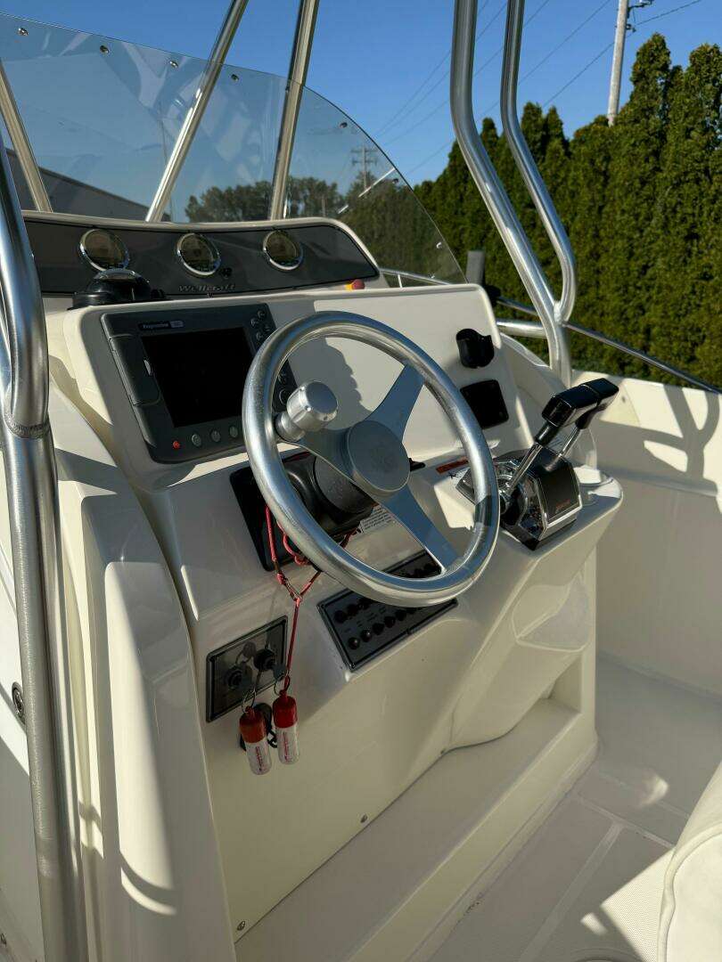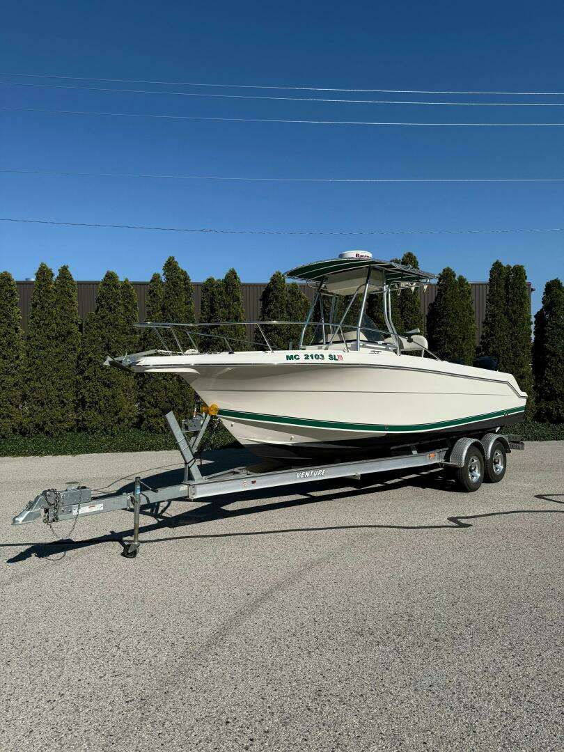 This meticulously maintained 2003 Wellcraft 250 Fisherman is a rare freshwater find. She has spent her entire life on Lake Michigan and has always been kept in climate-controlled storage when not in use. With her clean history and excellent care, she stands out as one of the best-kept examples of her class. Powered by twin Mercury 150 Optimax outboards (465 / 448 hours), she offers reliable performance and efficiency. The solid hull design delivers a dry, stable ride while still being quick to plane and responsive at the helm. Highlights include: - Twin Mercury 150 Optimax Outboards – 465 / 448 hours - Raymarine C80 Navigation system - Aluminum frame soft top with rod holders - Spacious bow seating with removable cushions for sunbathing or casting - Large in-deck fish boxes and insulated cooler storage - 30-gallon livewell aft - Ample rod holders and tackle storage throughout - Transom door for safe boarding and landing fish - Raw water washdown - Wide walkaround deck for easy movement around the boat Whether fishing the Great Lakes or cruising with family and friends, the Wellcraft 250 Fisherman blends fishability, comfort, and seaworthy performance. This freshwater-only vessel is turn-key and ready for her next adventure. Key Notes: Freshwater use only Climate-controlled storage since new Excellent condition, fully equipped