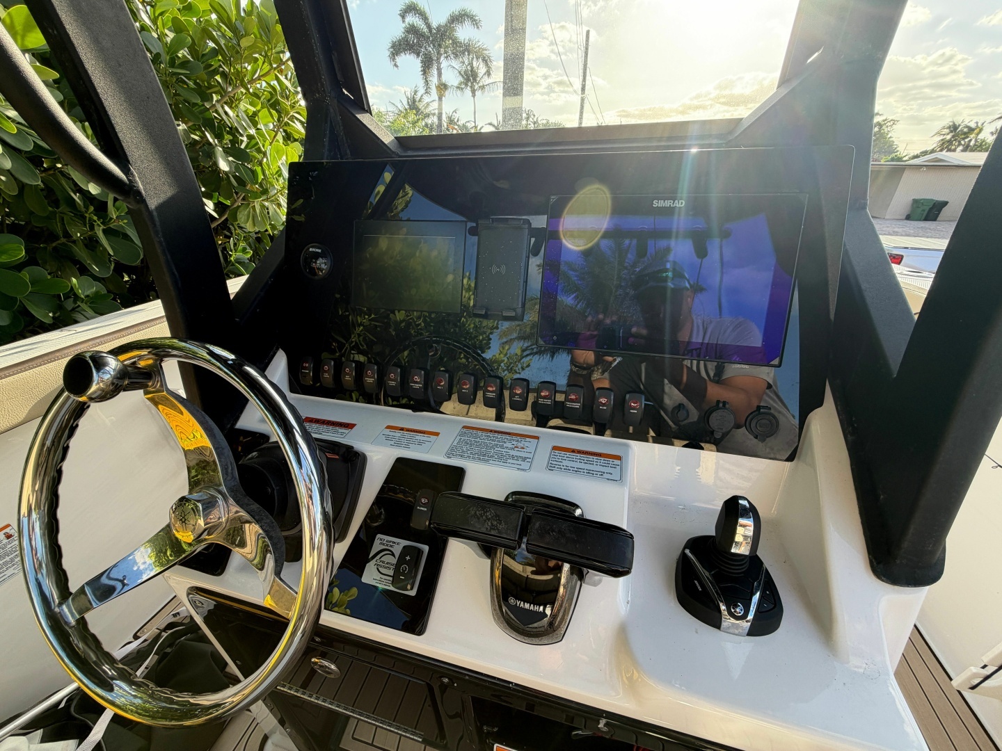This vessel is one of the most versatile center console jet boats on the market, seamlessly combining serious fishing capabilities with family-friendly comfort. It is is powered by Yamaha's twin-engine jet propulsion system, which delivers impressive performance as well as shallow-water capabilities and added safety due to its lack of exposed propellers.
