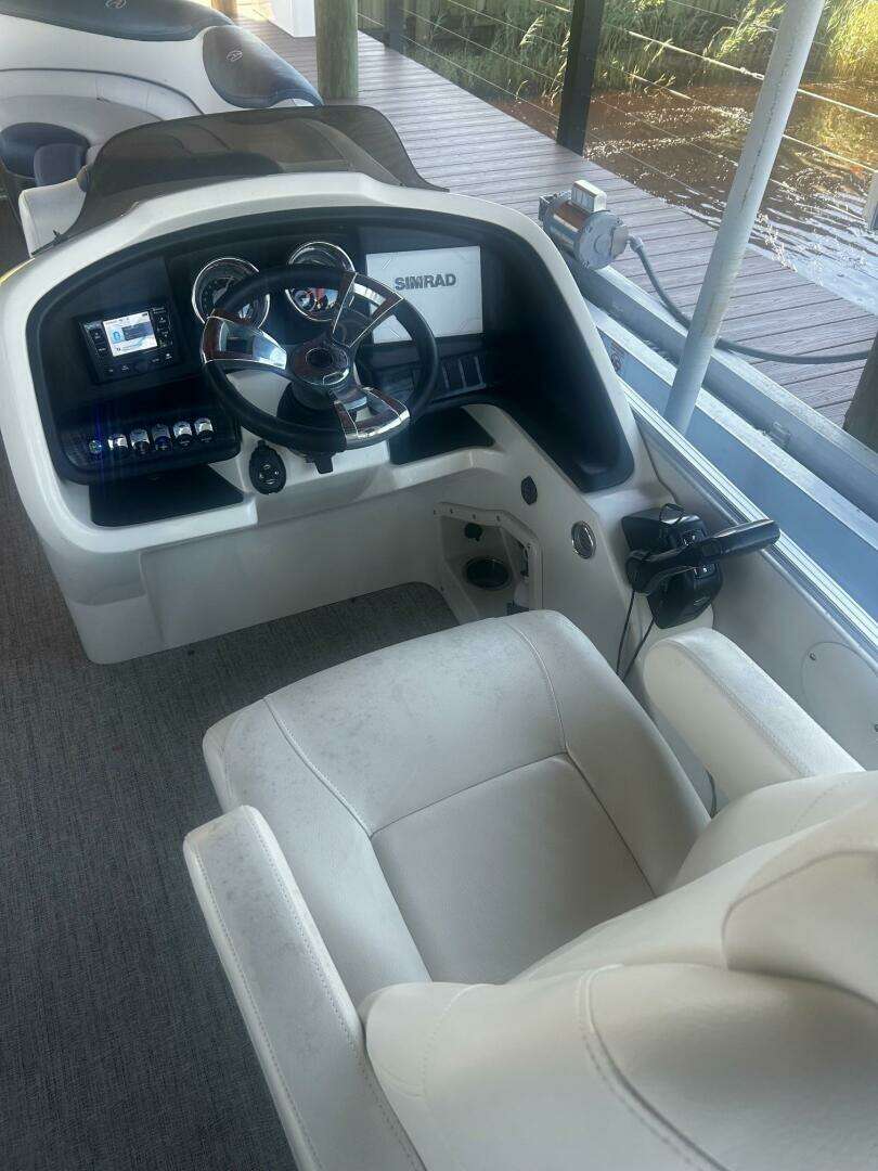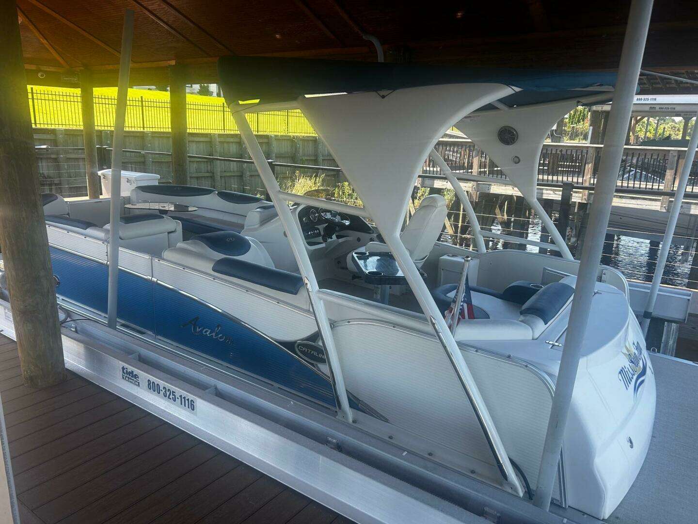 This 2020 Avalon 2585 RJ Tritoon is a "show stopper"! The "Miss Sun Fun" has all the bells and whistles including a 200 Suzuki with only 138 hours, interior light and sound package, Simrad GPS, a Minn Kota Talon shallow water anchor with remote, and upgraded bottom coasting on the toons. Your crew