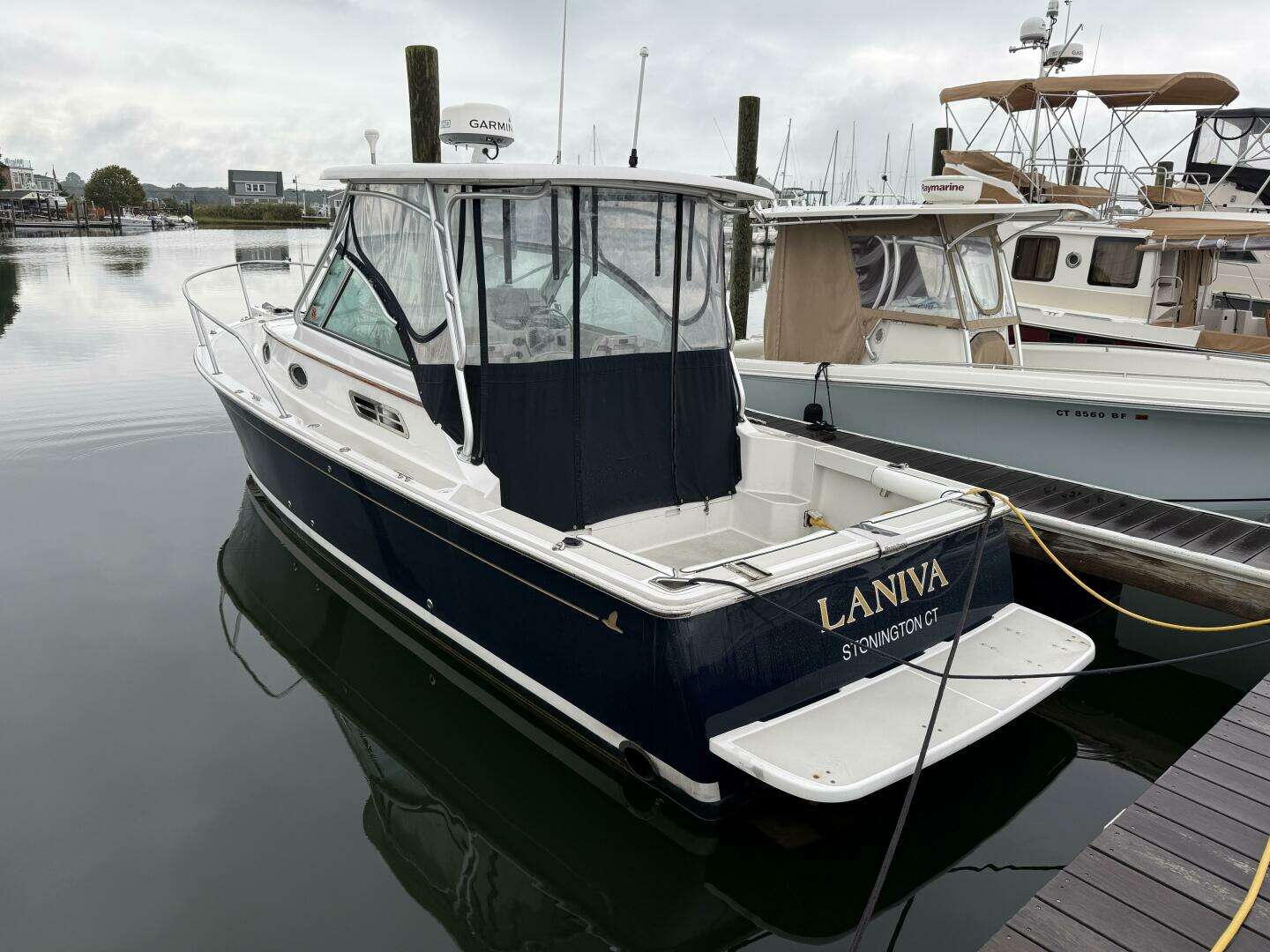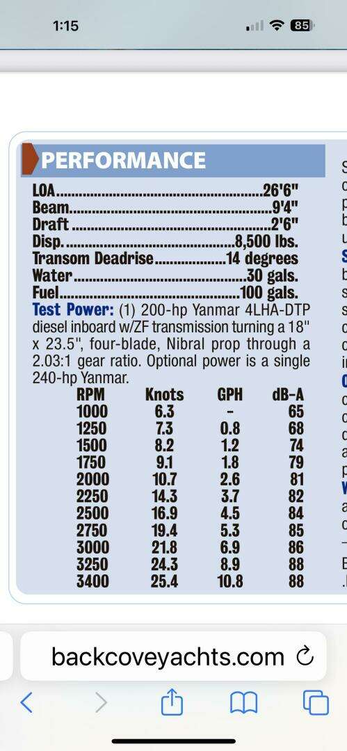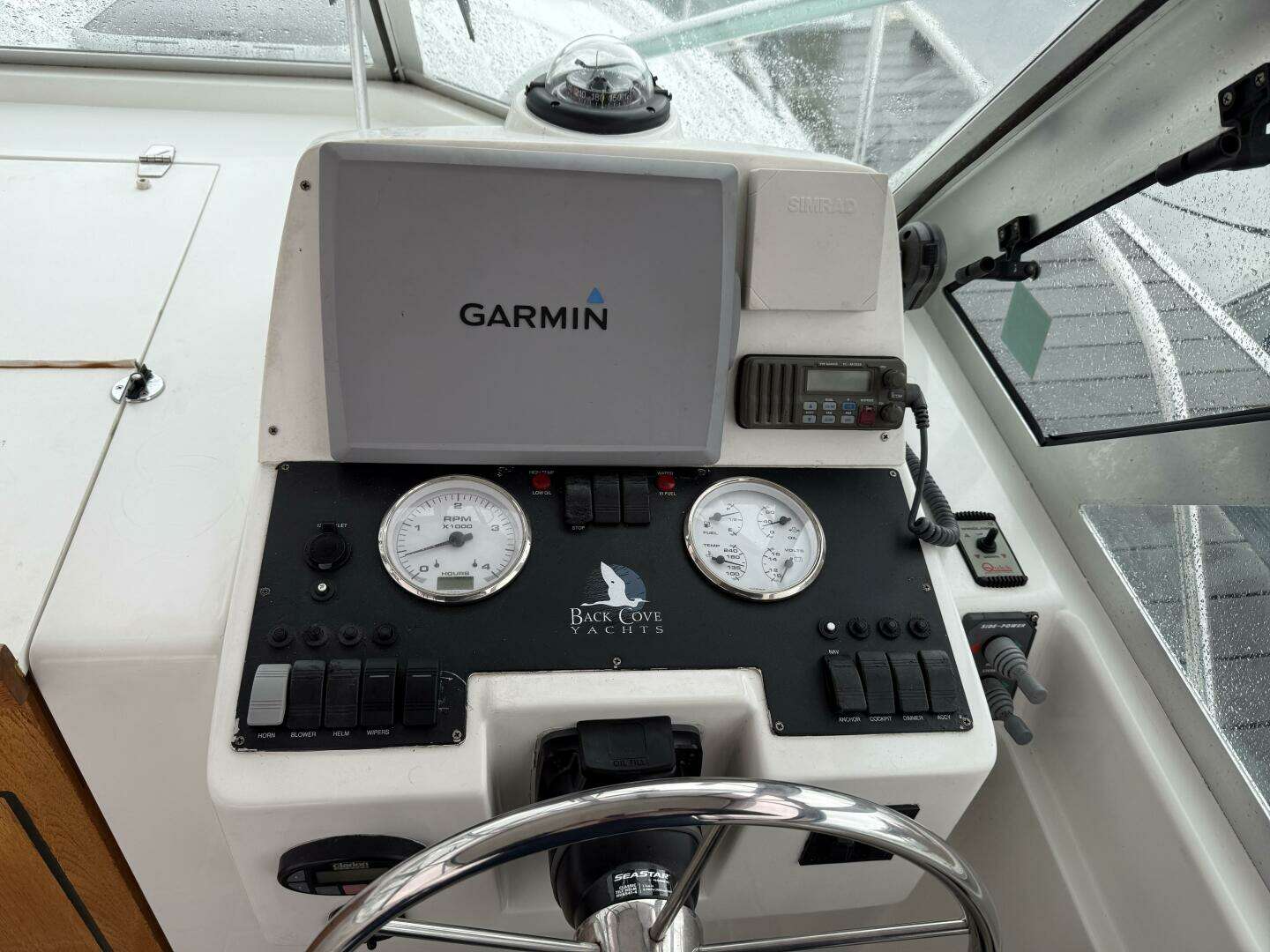 Be sure to watch the video tour linked within this listing! This Back Cove 26 has some special features that make it standout including: The Factory Installed Hardtop, Bow & Stern Thrusters, Upgraded Garmin Electronics, Autopilot, Painted Flag Blue Hull with White Boot stripe and gold Cove Stripe, and only 720 hours on the upgraded Yanmar 230 HP diesel. Other amenities include air condition with reverse cycle heat, newer fridge in galley, inverter, newer canvas package, awning for shade in cockpit, anchor windlass with controls at the helm, and more. Best of all everything is in good working condition and she looks as pretty as one would expect from a Back Cove. Three new batteries and electric engine hatch piston Oct '25.