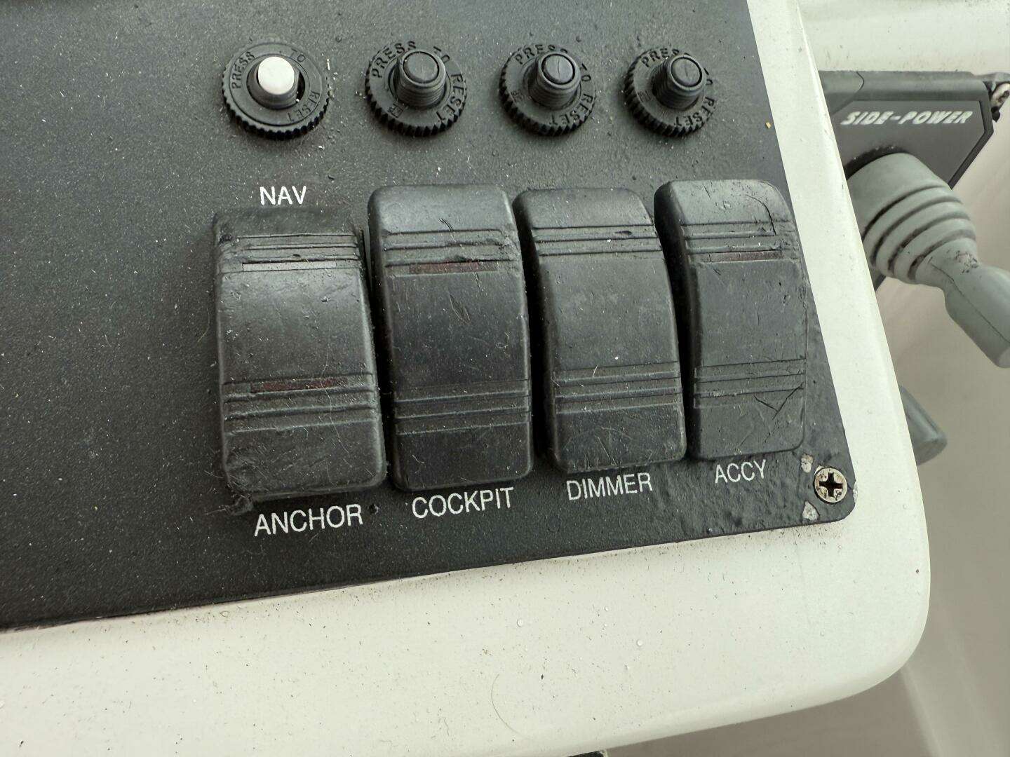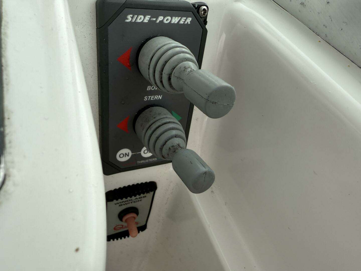 - SidePower bow thruster and stern thruster with joy stick controls at helm