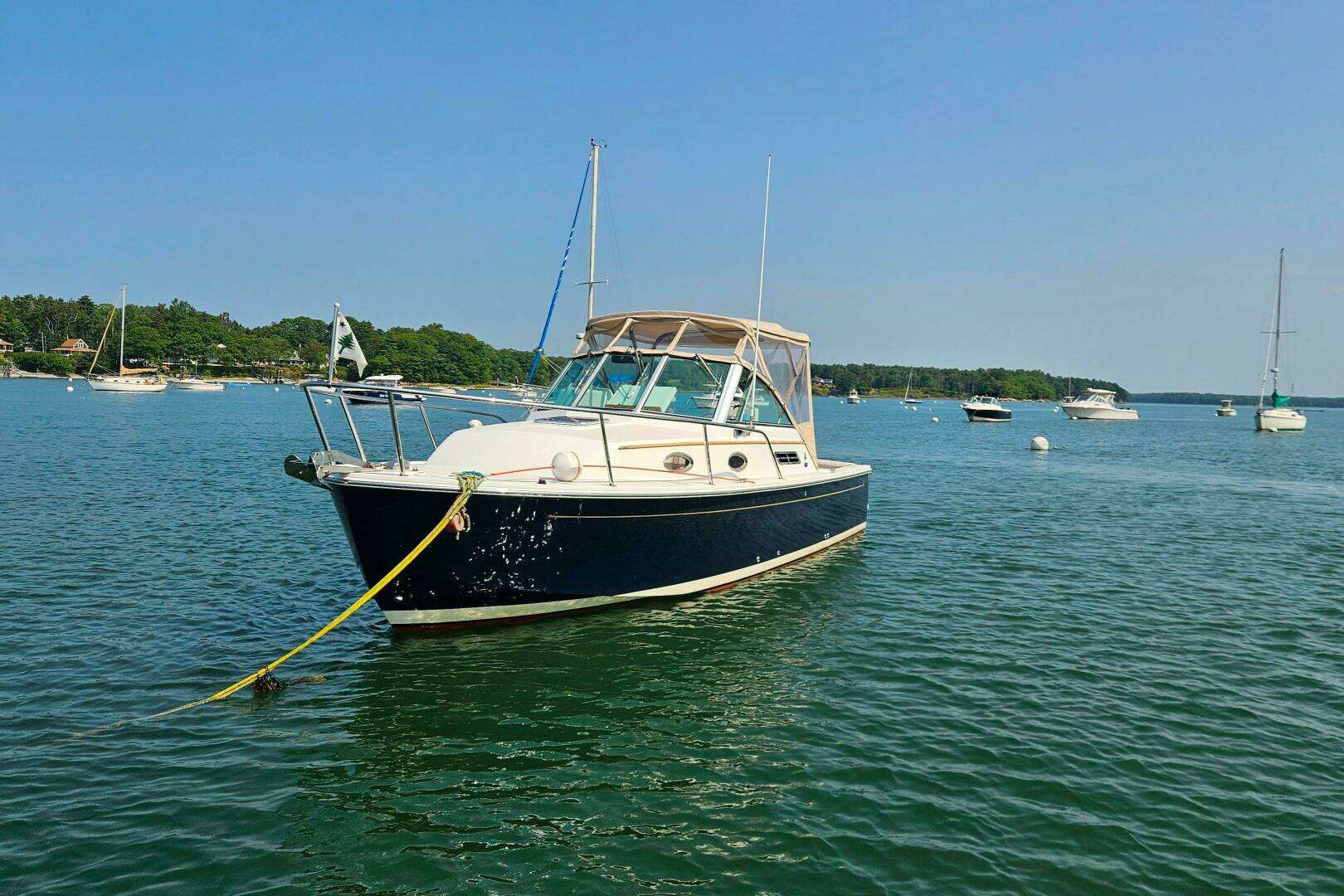 The Back Cove 26 is a fantastic vessel, offering her owners and guests features which are traditionally only found in larger vessels. Bow & stern thrusters, an anchor windlass, full galley with enclosed head, and functional side decks are a few of her positive attributes. This vessel has been very well kept by her knowledgeable owners, and presents quite well for her age.