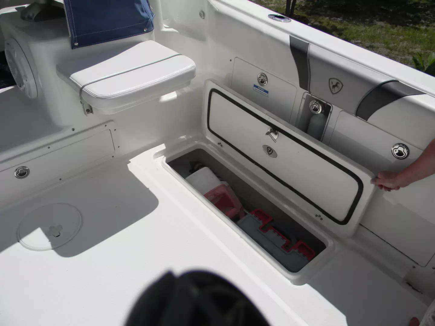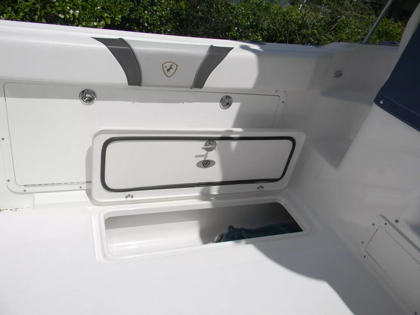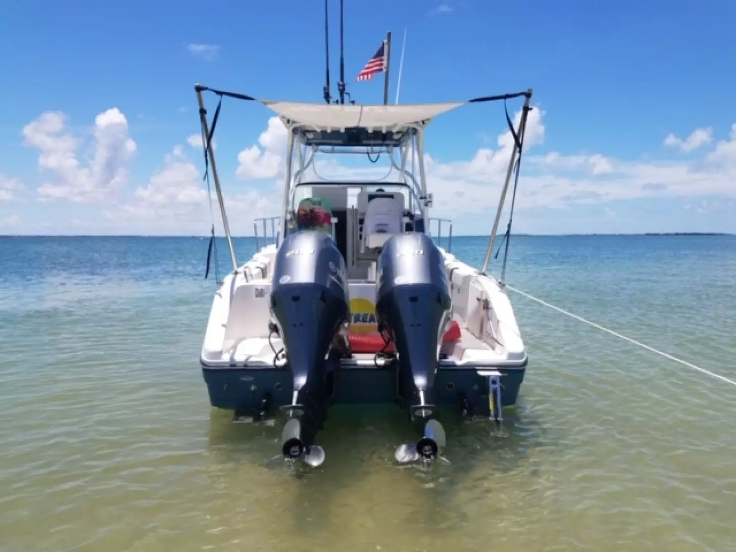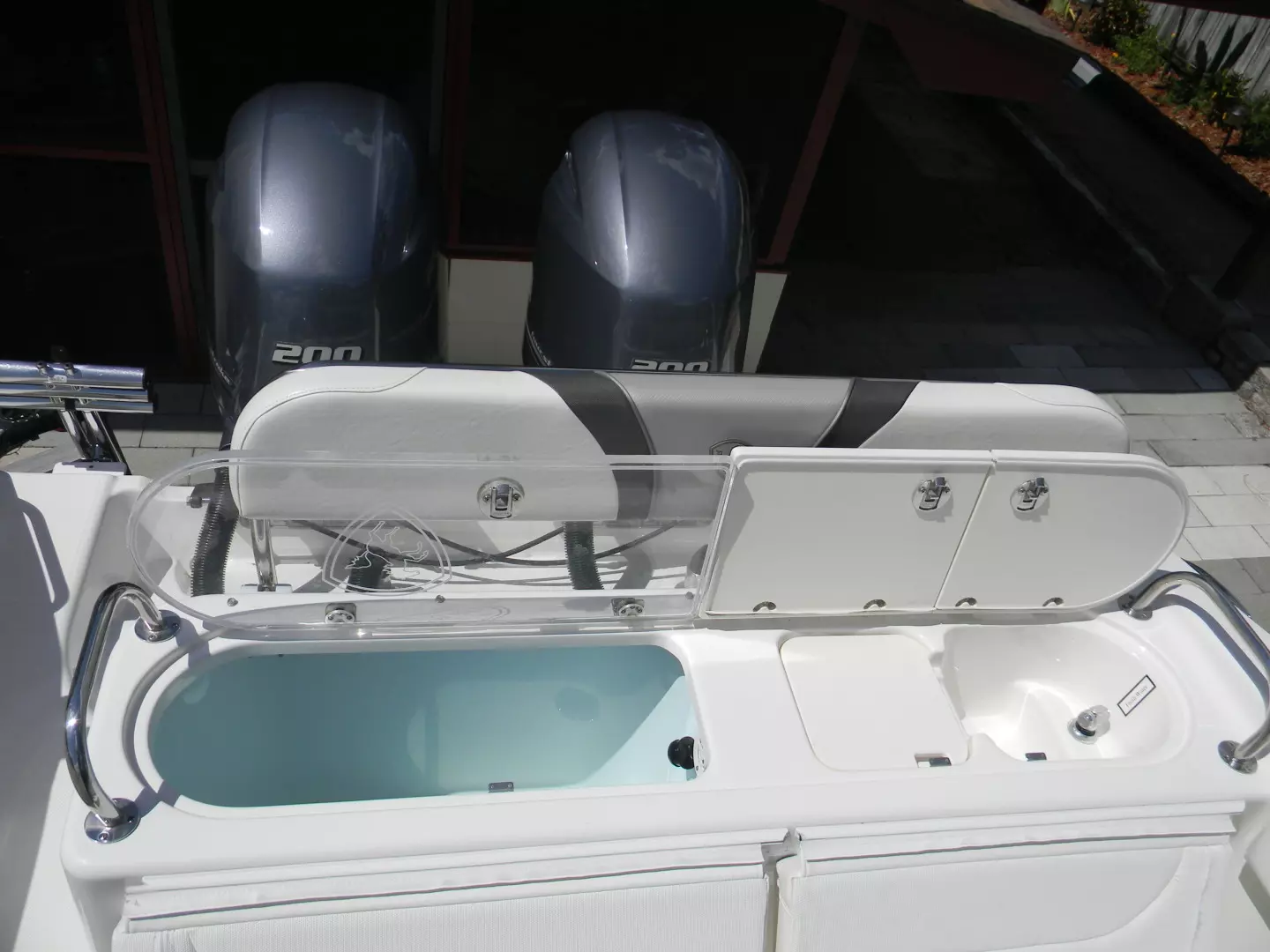- Blue transom underwater lights trim tab mounted
