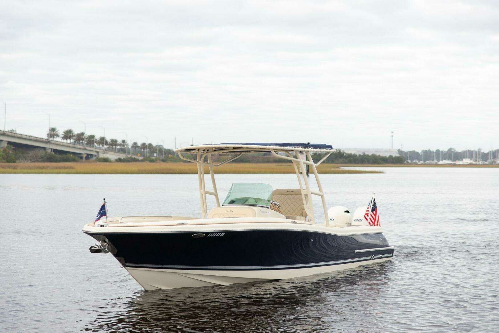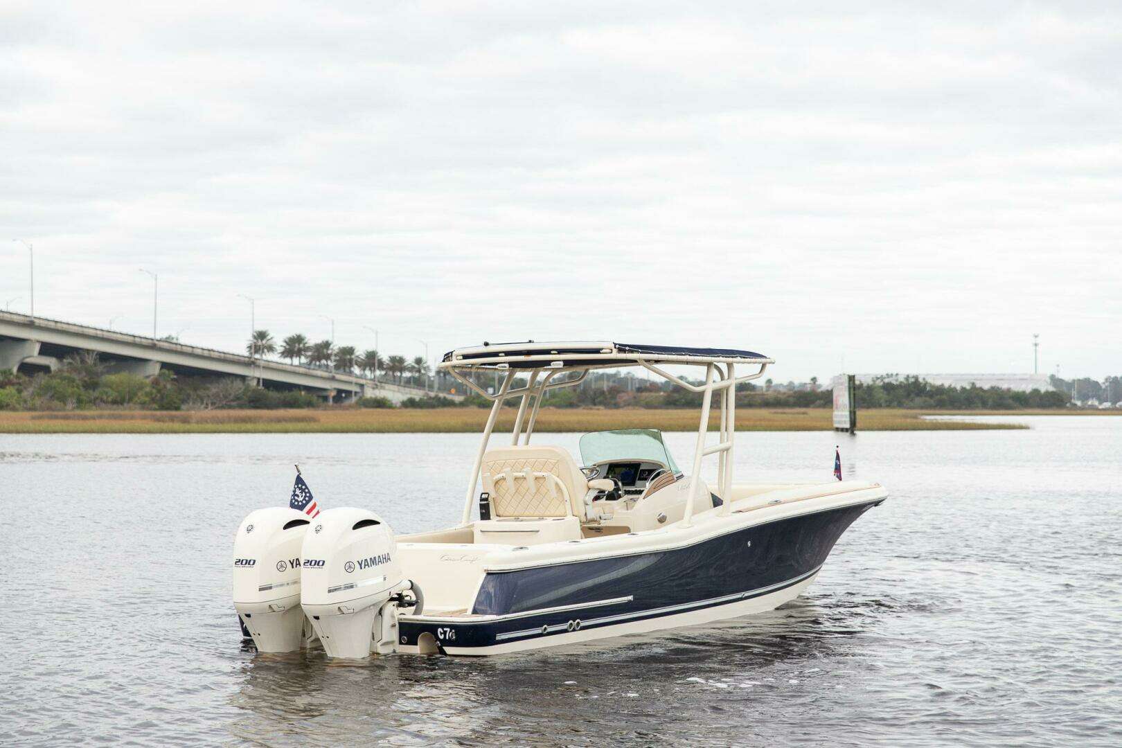 The Chris-Craft Catalina 26 is all about luxury. The graceful silhouette accommodates 8 passengers with expansive seating. For protection and comfort on long days, the deep V hull and flared bow keep spray at bay and all passengers dry on deck, and should you choose, there’s an extendable sunshade that slides aft to provide rear coverage overhead. Powered by the Preferred Twin Yamaha 200hp This boat is a blast to drive, Both Fast and Fuel Efficient, that will make your day on the water that much more enjoyable! This boat has been Kept in Dry Stack Storage its entire Life and it Shows! Electronics: Garmin 7612 XSV Fusion Stereo JL Audio Speakers Lenco Trim Tabs Yamaha Digital Displays Optimus Power Steering Lumitec Spreader Lights Other Features: Windlass Anchor Teak Toe Rail & Accents Upholstery Throughout in Great Shape Fold Down Rear Seating Electric Head Floor Covering Aft Boarding Door Extended Sunshade Leaning Post Live Well 8 Fishing Rod Holders Stainless Steel Rub Rail Two tone Navy Blue/Off White Hull Color Custom Paint Matched Engine Color Interior Courtesy Lighting Please Contact Today to Schedule a Private Showing