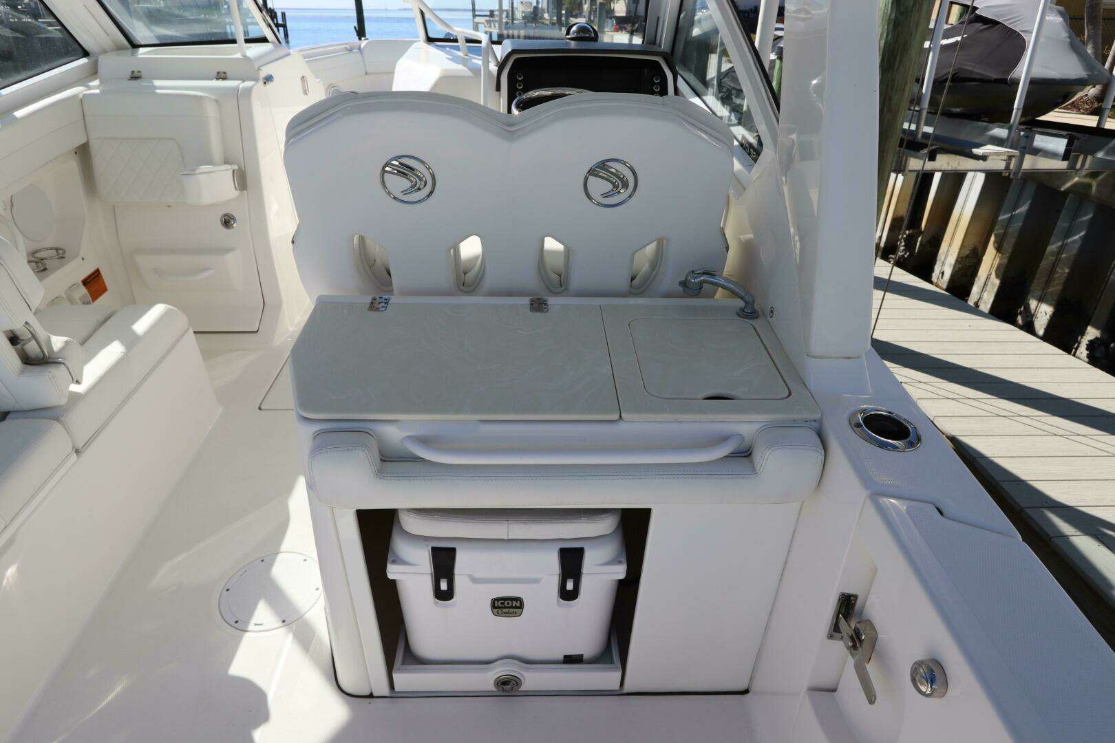 - Starboard Side Prep Station w/ Fresh Water Sink, Insulated Storage & Sliding 50QT Premium Cooler