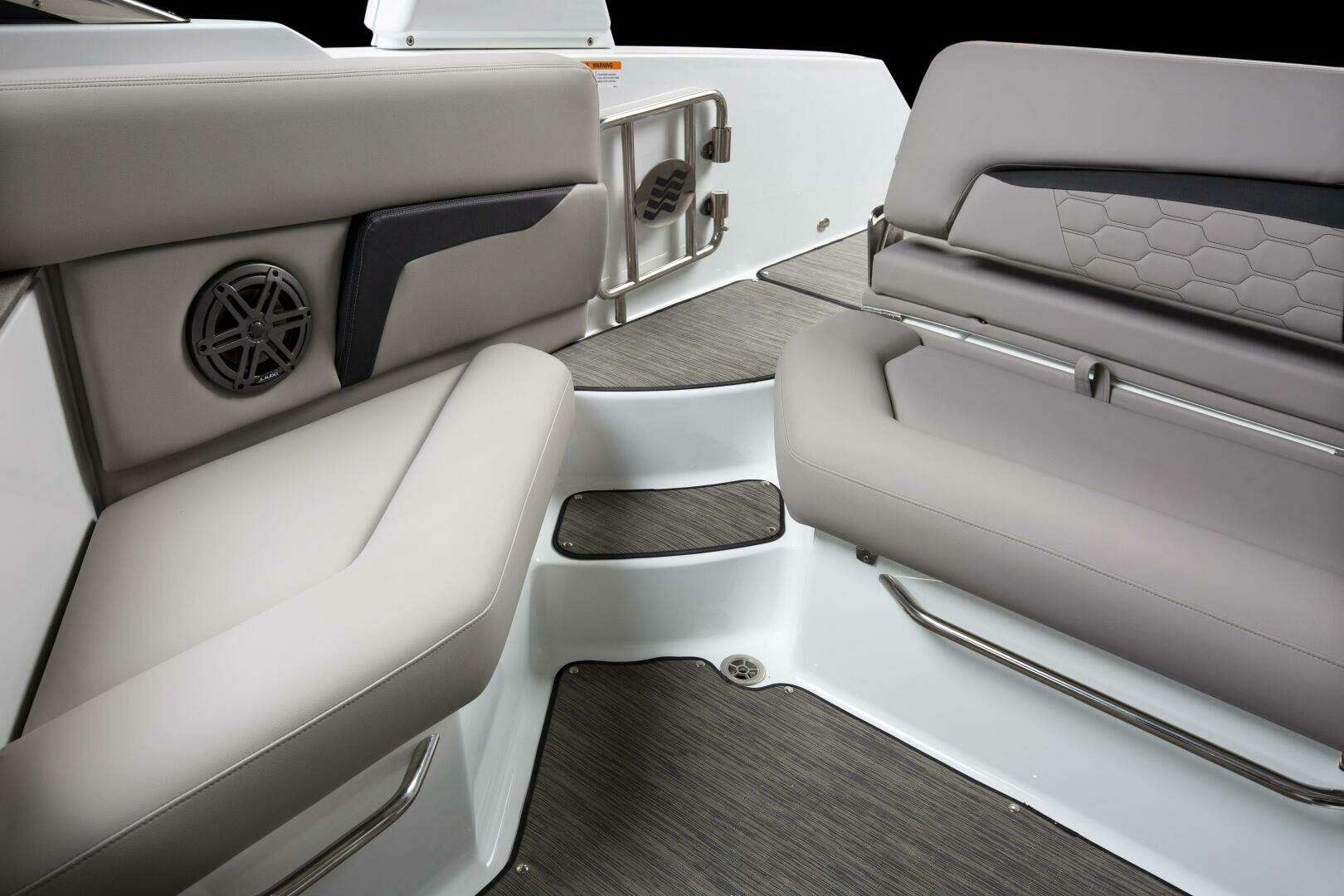 - LX Package (Bimini Top, Pull Up Cleats, & Cockpit Reed Flooring) • SLX Package (Bow Fill In Cushions, Bow & Cockpit Cover, Docking Lights, Swim Platform Mat, Table, & Walk-Thru Door)