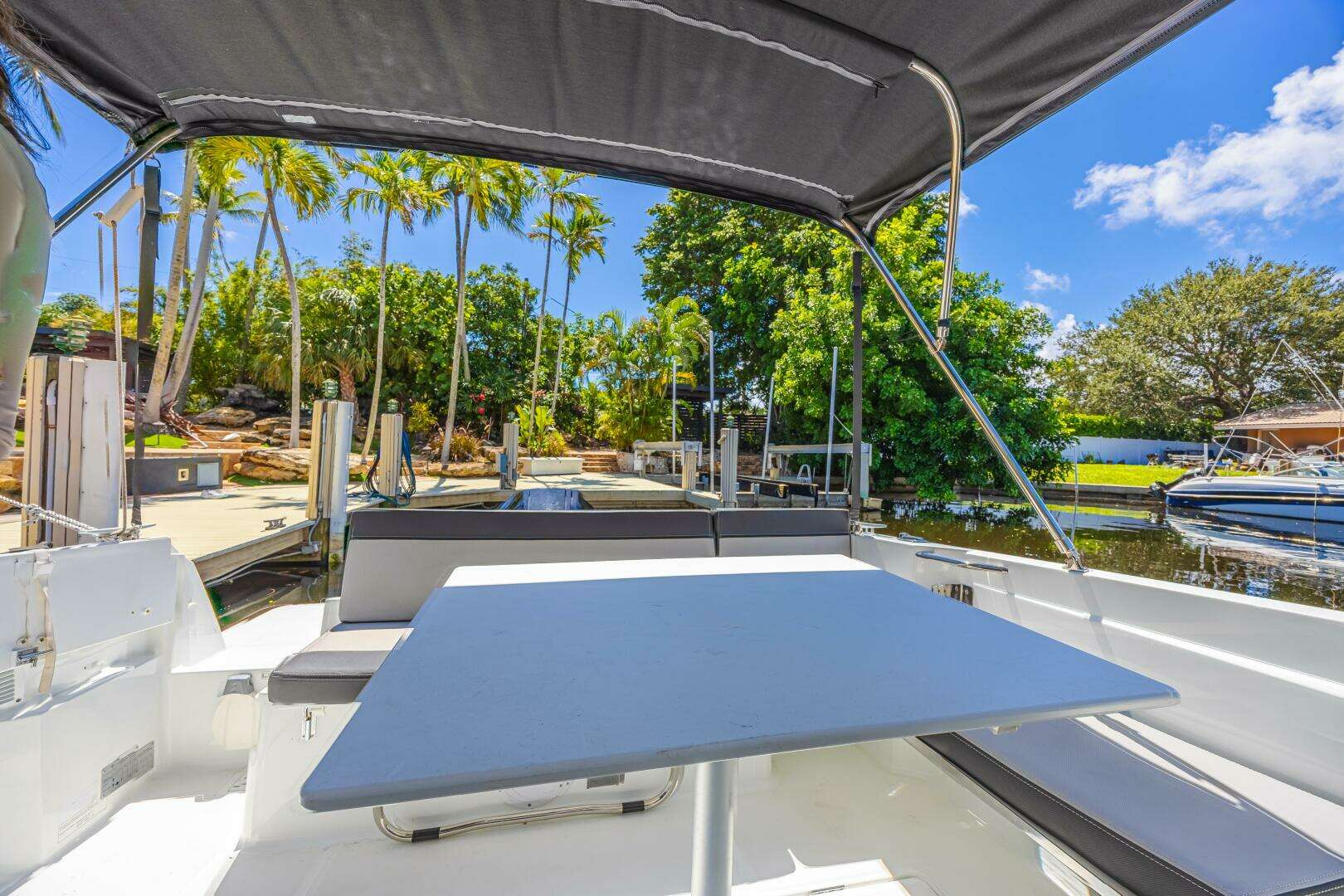 Step into a spacious cockpit that transforms from lounging to dining in seconds. The aft bench slides forward for extra engine clearance, while the folding table invites sunset dinners on the water. Soft, marine-grade cushions and a retractable bimini provide shade or sunshine on demand—ideal for sandbar days or canal cruising.