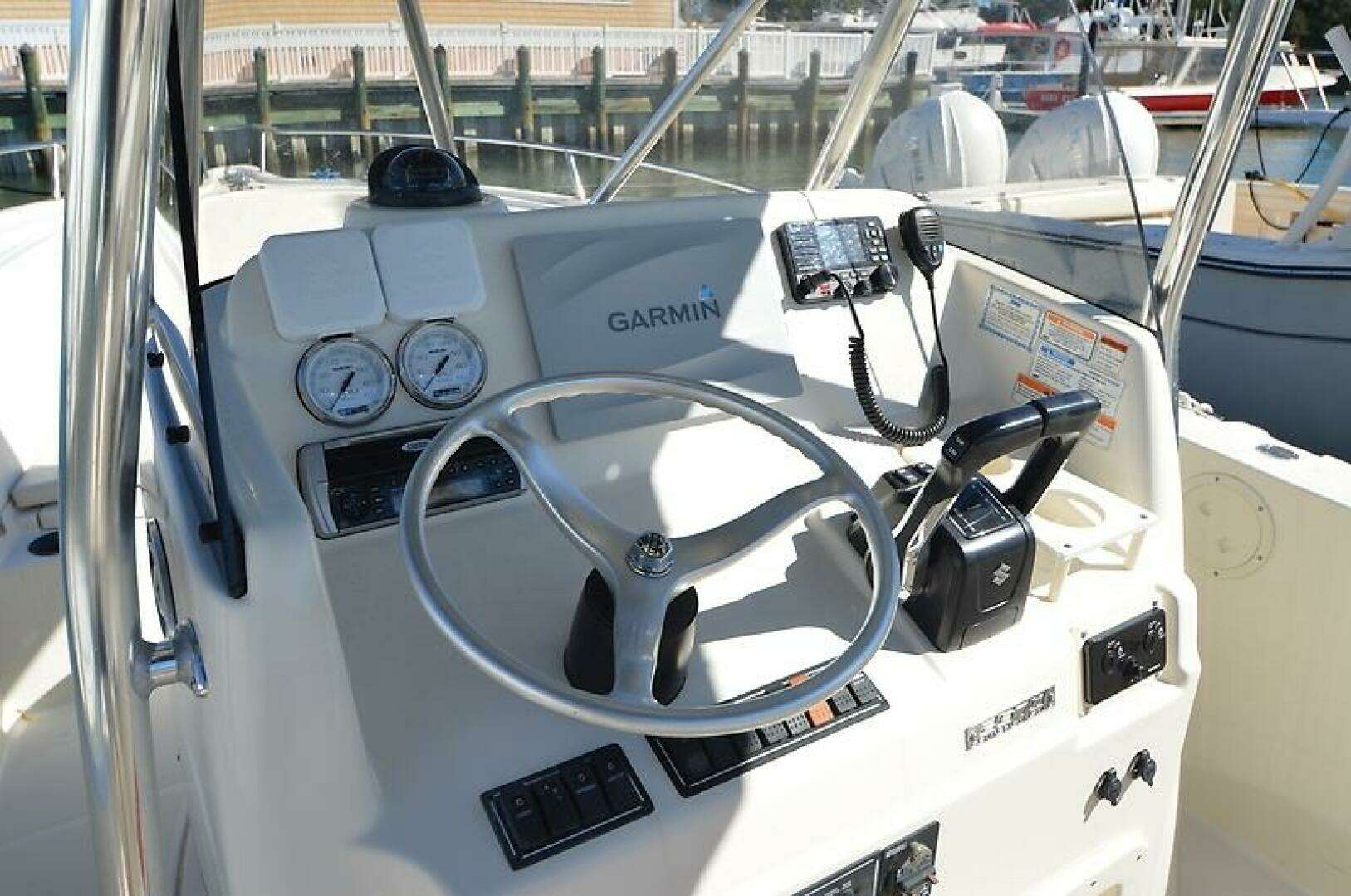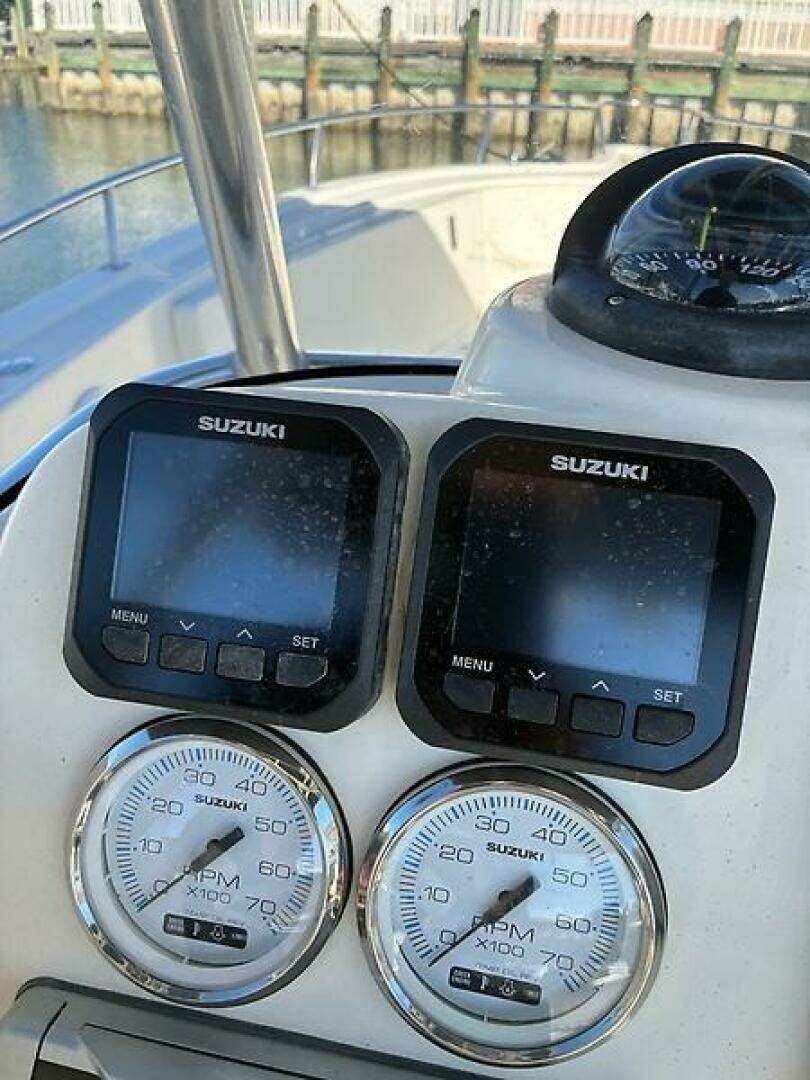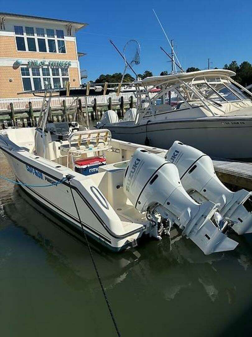 This 2005 Pursuit 2670 Center Console is as nice of an example of her vintage that you will find! She is nearly perfect! Repowered in 2025 with twin Suzuki 200's (with only 40 hours on them and roughly 5 years of transferable warranty remaining), the boat looks incredible. Her original Yamahas only had about 270 hours when they were replaced, so the boat has been very lightly used and rarely fished. Current owner has had a change in plans, which is why he has decided to place her on the market. She has a Garmin XSV chart plotter/bottom machine (also hooked up to the outboards), ICOM IC-M510 VHF radio, twin electronic Suzuki engine displays with twin analogue gages as well, Clarion stereo system, forward seating with cushions that are in incredible condition, fold-down cockpit seating with cushion, cup holders, windshield, canvas for the helm and helm seat, Lewmar windlass, fresh and raw water washdowns, large macerated fish box, live bait well, tackle storage, manual head under console, holding tank, and plenty of rod holders.
