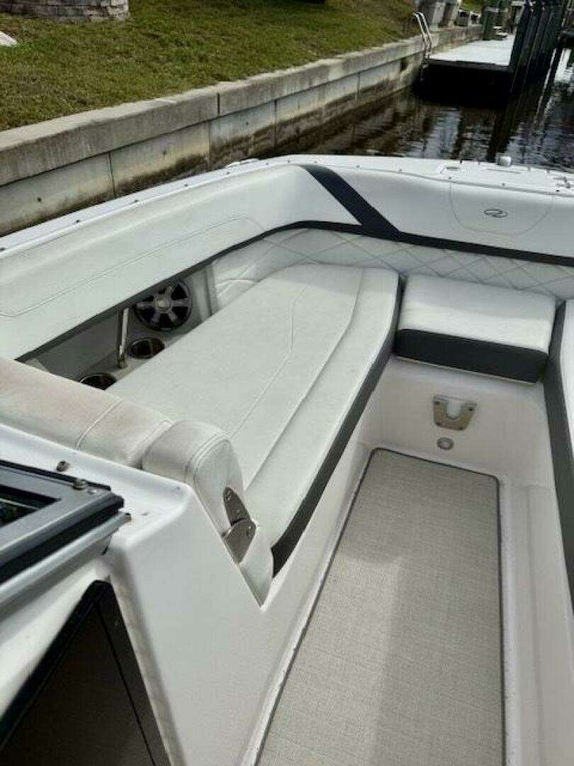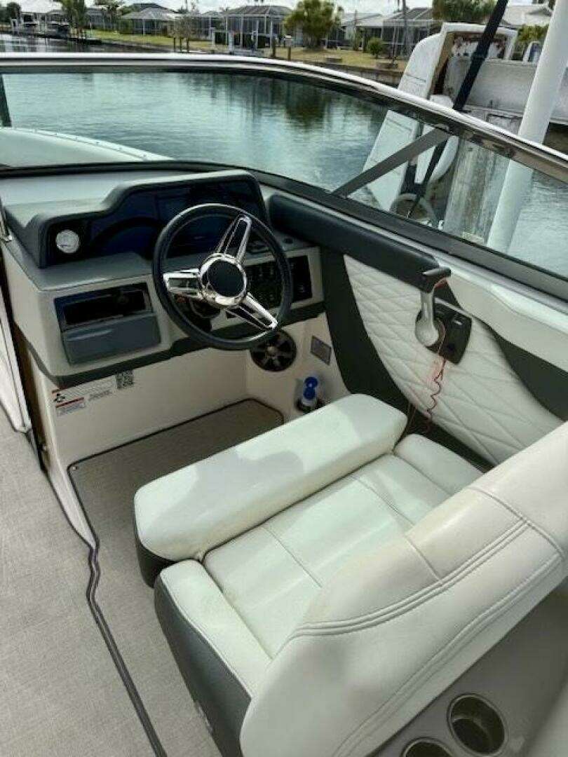| Notable Upgrades: This luxury Bow Riders comes with all the options including cockpit and underwater blue led lights, a transom wash down, bow- cockpit and full hull storage cover. There is a deluxe snap-in deck covering and extra rod holders. There is also a premium sound system with plenty of power. |