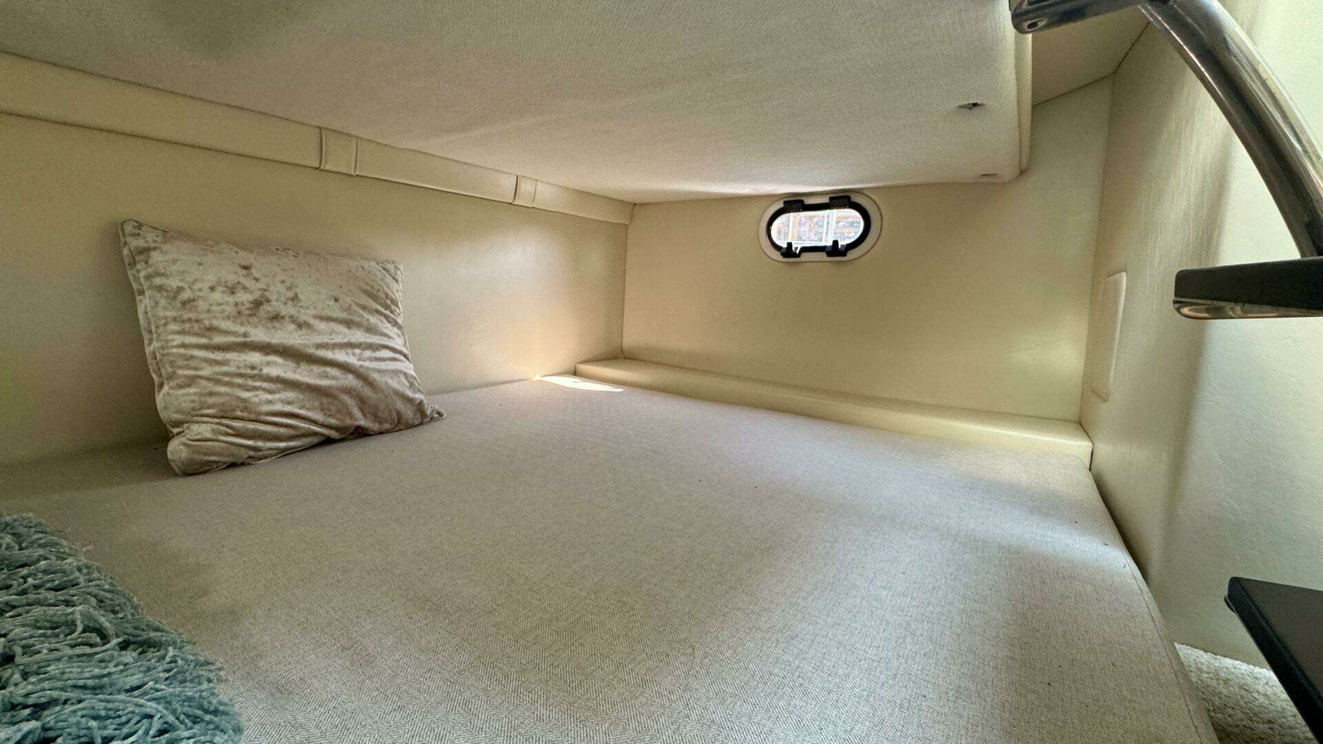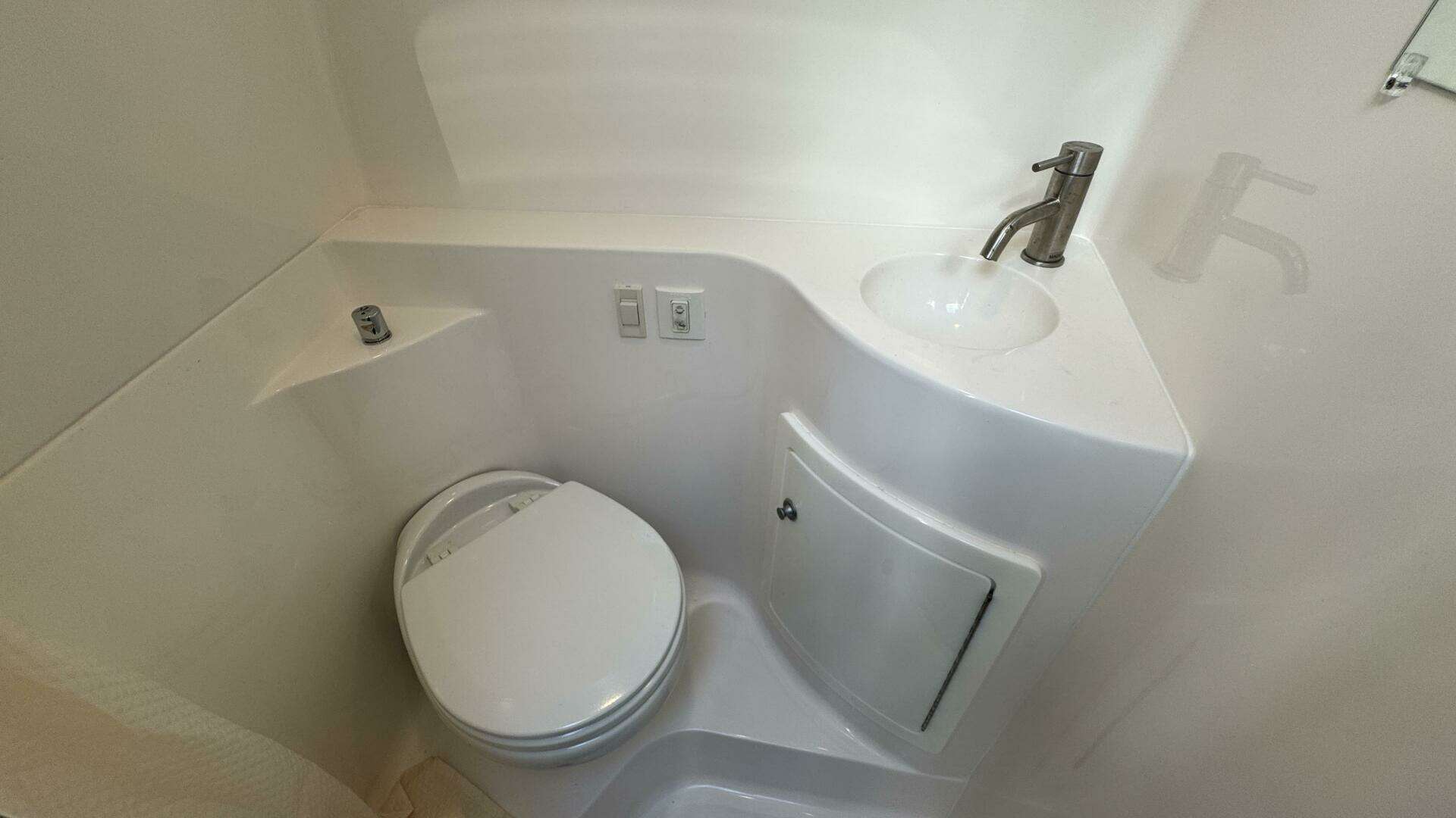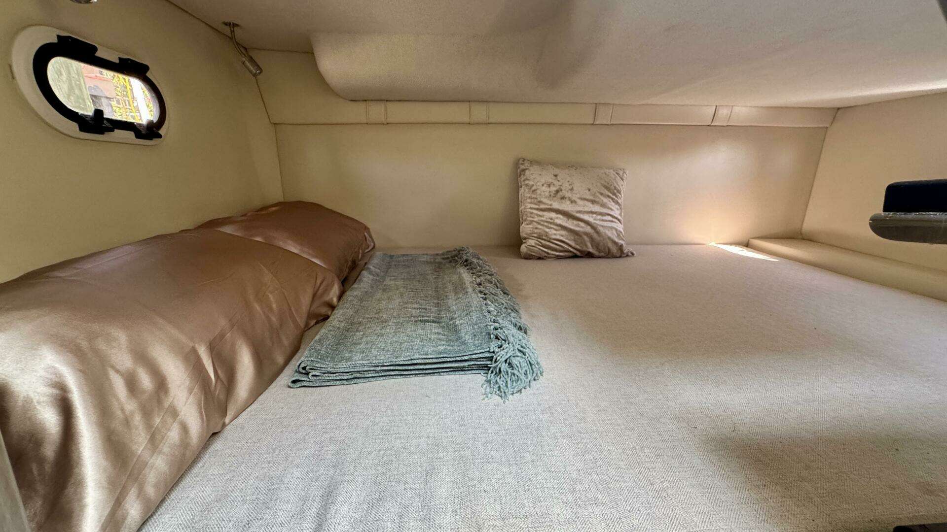 Sleeps four with a convertible V-berth and cozy mid-cabin double. Large windows bring in abundant natural light. Includes a galley with refrigerator, microwave, air conditioning, and a private head with shower. Perfect for comfortable overnight escapes, with one of the most spacious salon layouts in its class.