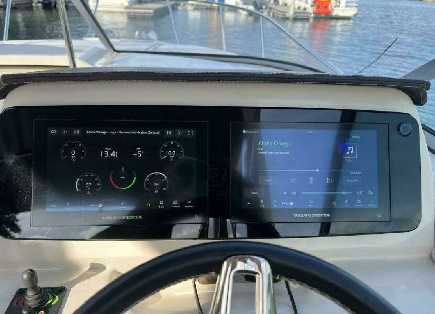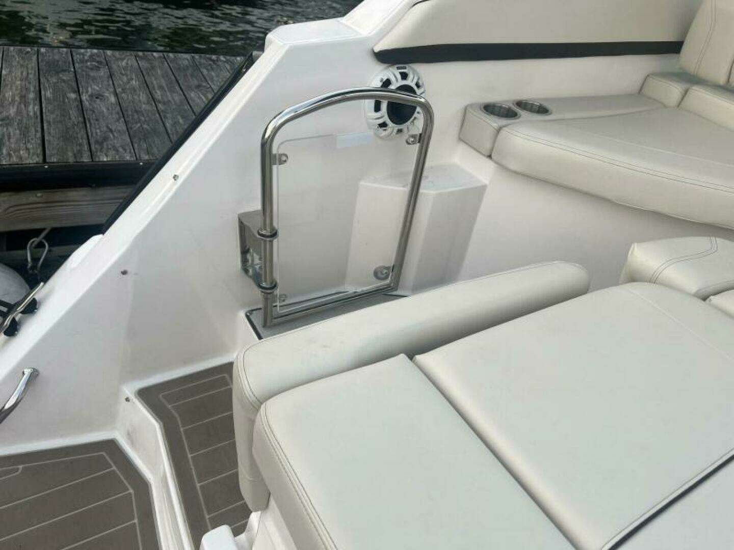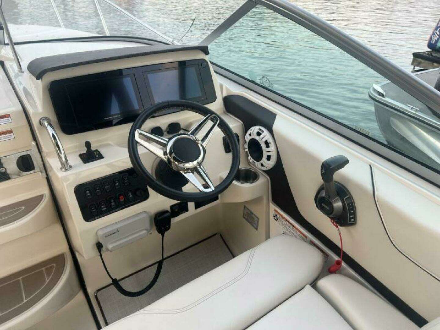Whether you are looking for a weekend cruiser or a fun day tripper to your favorite waterfront locations, this boat can do it all. It has the feel of a much larger boat due to the layout above and below deck. At the helm, you have smart vessel screens that can do it all. The bow thruster control is located next to the wheel, making docking easier for the operator.
