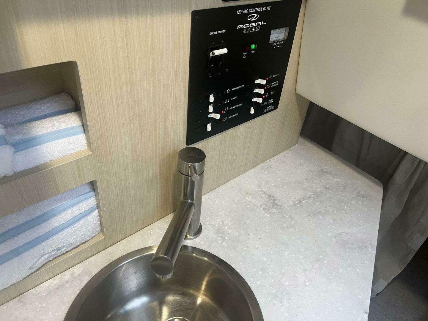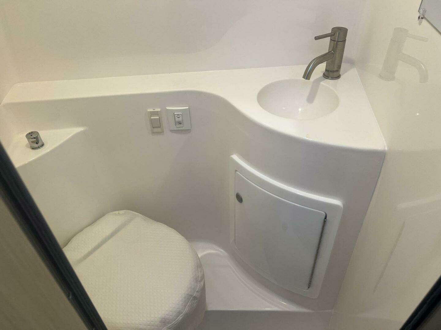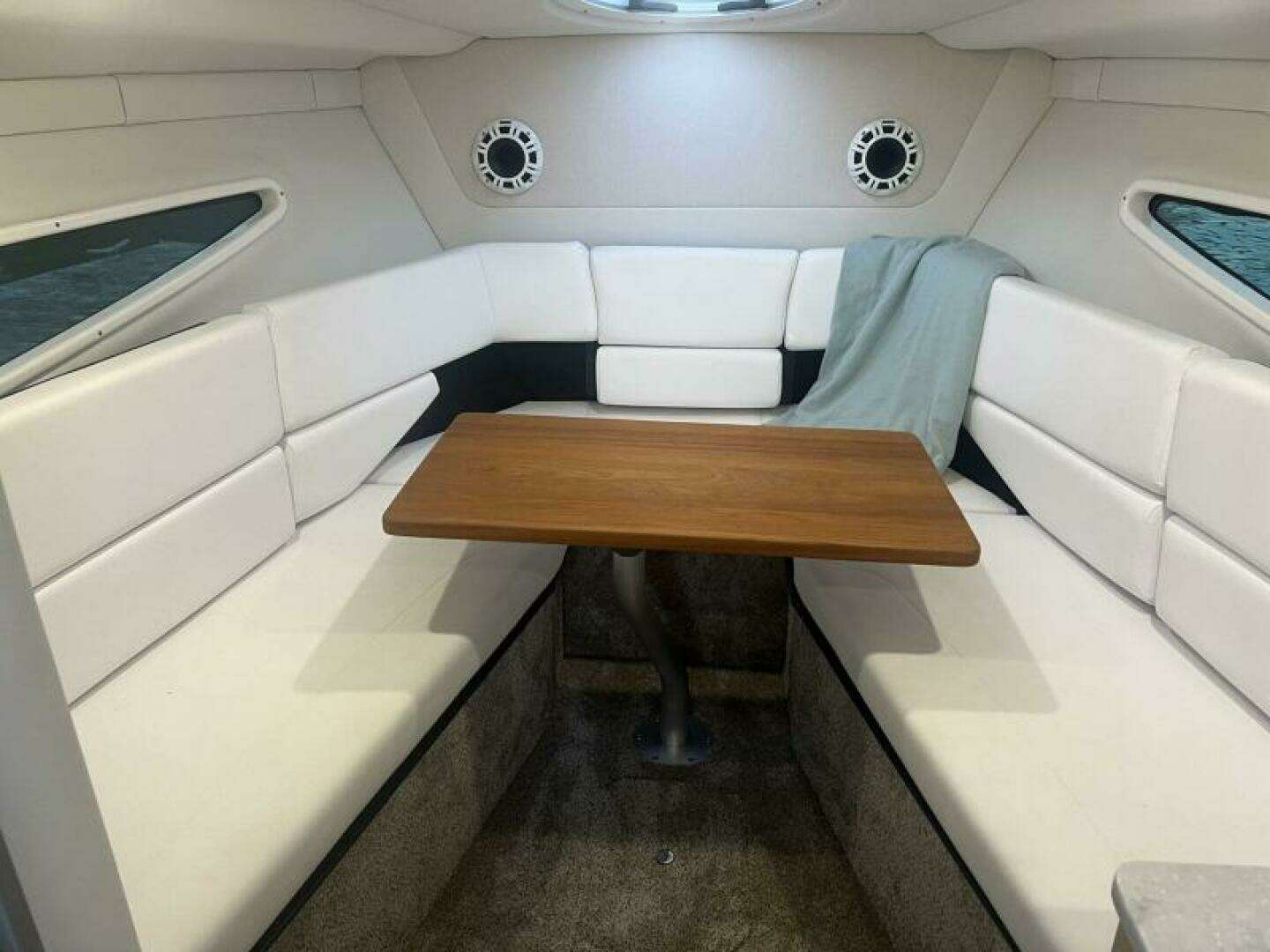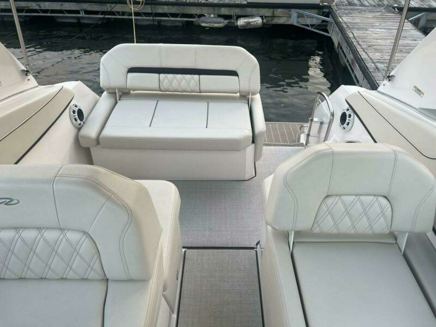 Whether you are looking for a weekend cruiser or a fun day tripper to your favorite waterfront locations, this boat can do it all. It has the feel of a much larger boat due to the layout above and below deck. At the helm, you have smart vessel screens that can do it all. The bow thruster control is located next to the wheel, making docking easier for the operator.
