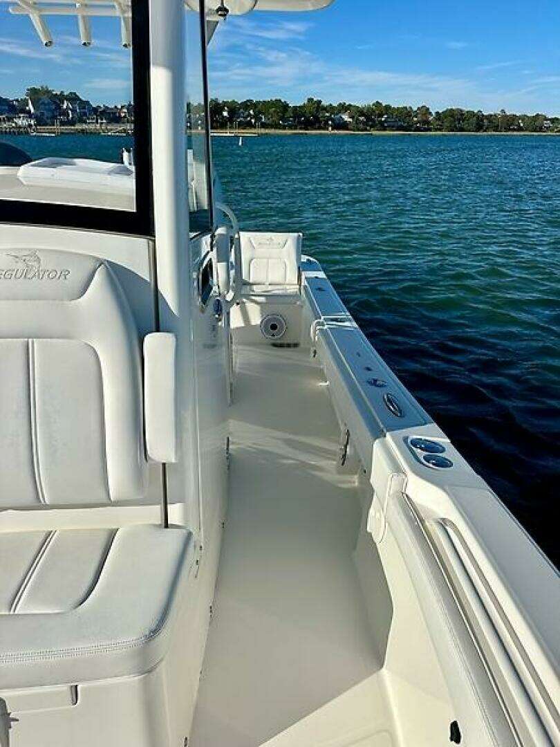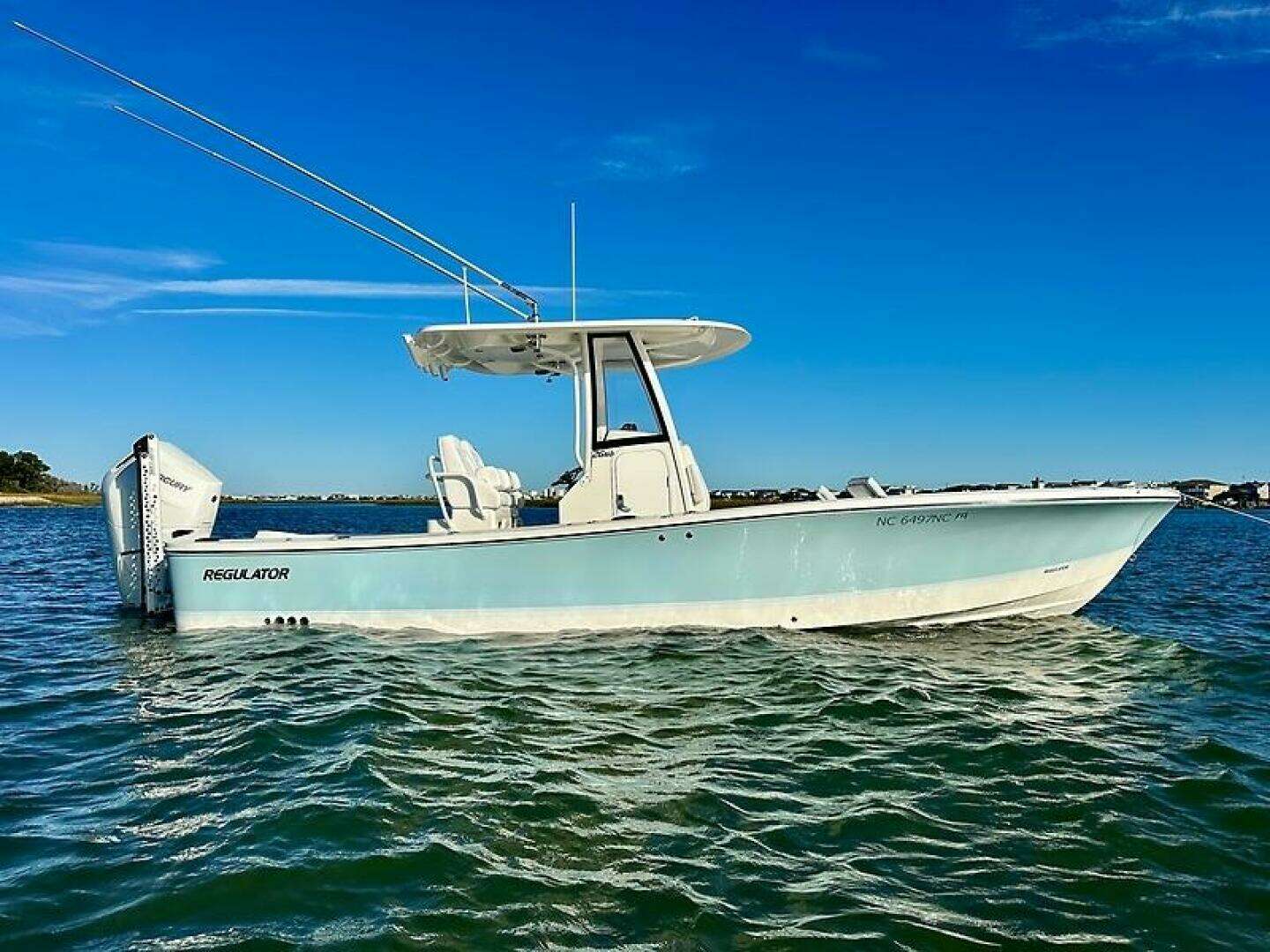 “Amy’s Cupholder” is a Mercury V10 powered 2020 Regulator 26xo that’s new to the market with only 185 hours and warranty till 9/7/2026(can be extended). She features a Garmin electronics package, Taco outriggers, MinnKota Raptor 8’ pole, Polk stereo with JL Audio speakers/subwoofer and a MagicTilt trailer. Contact Preston Frieze today for more info (910)473-2628.