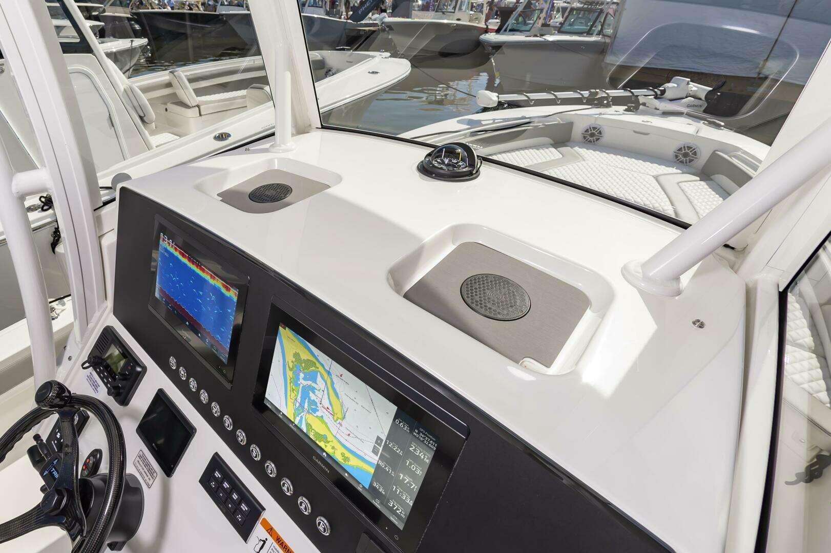 - Factory-Installed Garmin® 26XO Fish Package: One 16?? GPSMAP® 1643XSV Multi-Touch Widescreen Chartplotter/Sonar Display, VHF 215 Radio with Dual 8? Antennas, and Garmin® GT12M-THF CHIRP Transducer, Plus Black Flushmount Electronics Face and Remote Mic