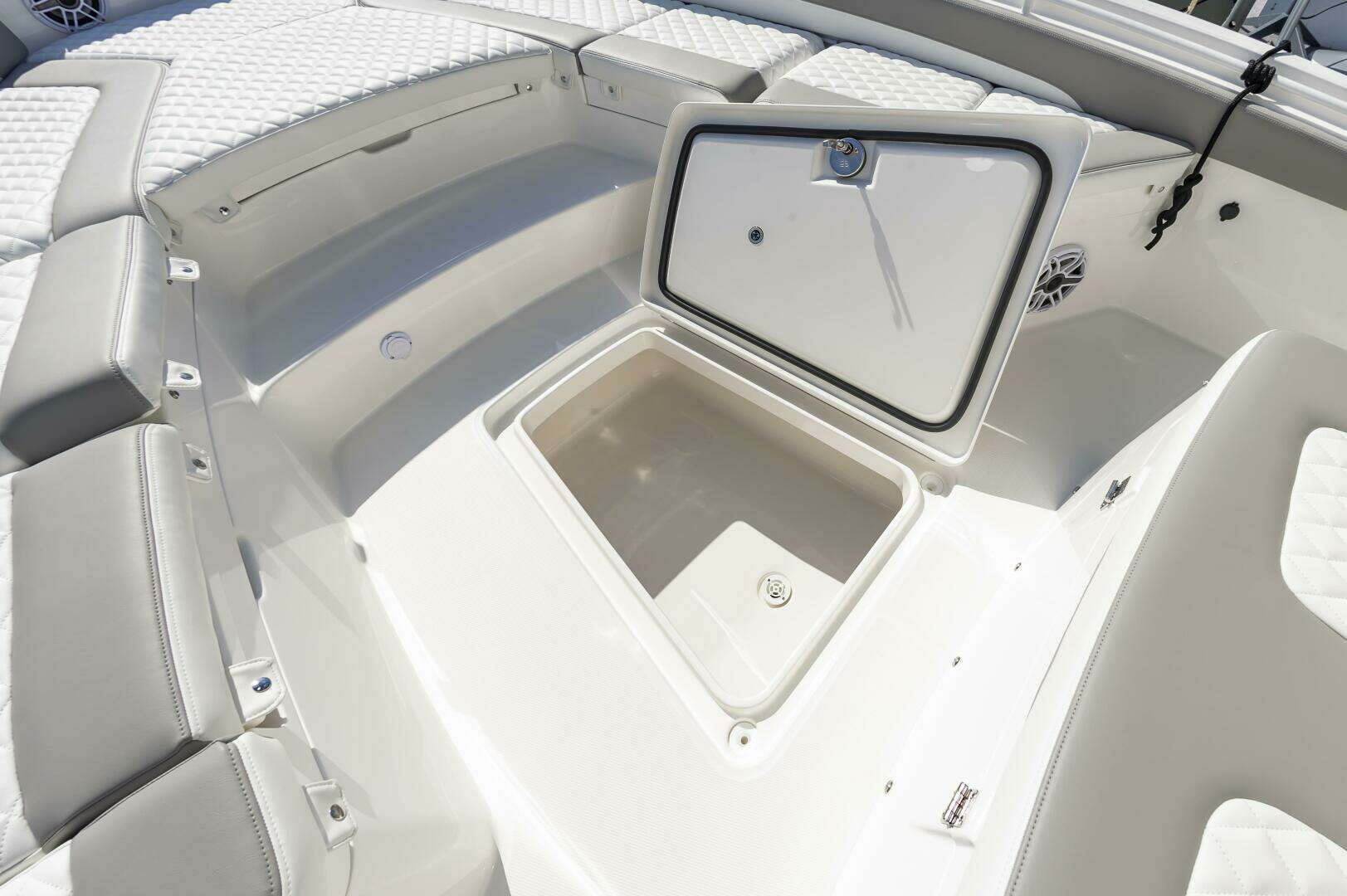 - Insulated, Illuminated Forward Fishbox (2) with Locking Rod Storage
