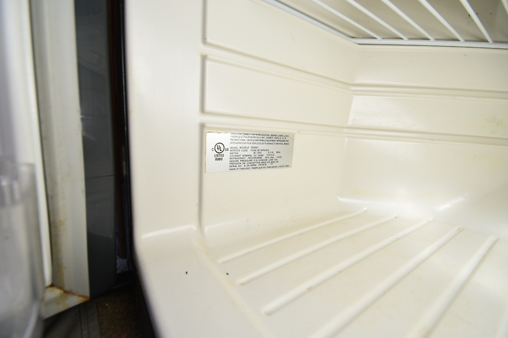 Galley with microwave, sink, 120V/12V refrigerator, and stove