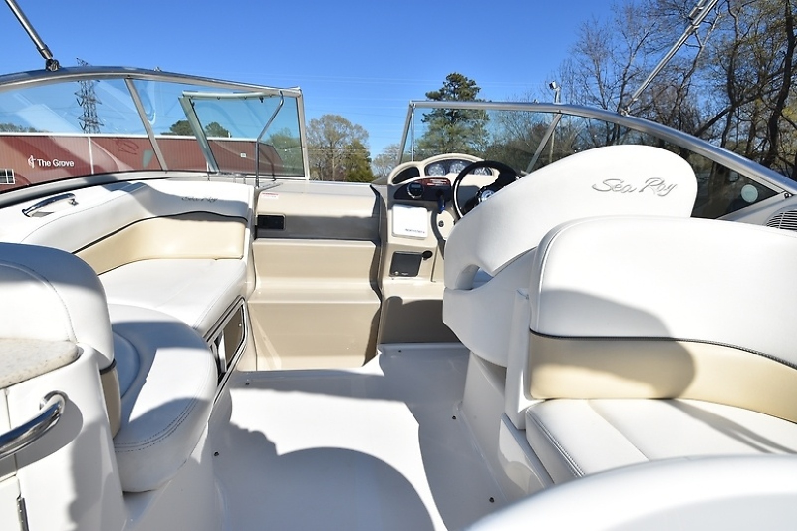 A small but telling detail many first-time Sea Ray owners appreciate: the deep-V hull not only slices through chop comfortably but also lends stability at anchor — a signature trait of the Sundancer line.